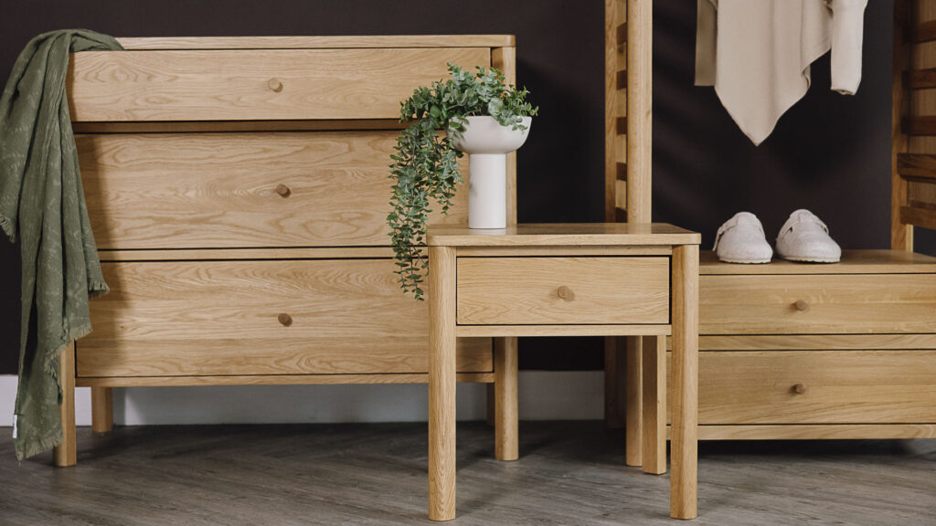 We offer a wide range of bedside tables from a range of suppliers. Our most recent additions includes the Oslo bedside table with single drawer in oak (the Oslo range also includes an open wardrobe and chest of drawers).