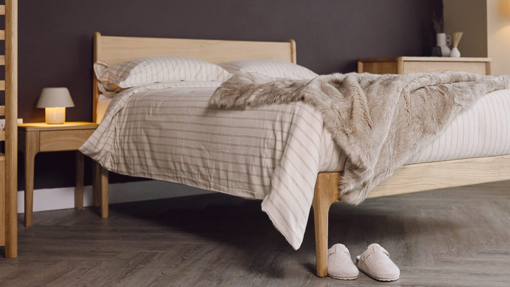 When it comes to holiday décor natural materials—like wood, linen, and organic cotton—instantly bring warmth and tranquillity to any room. A solid wood bed frame offers a timeless, elegant design that fits beautifully with a festive setting. The rich tones of these frames complement the winter season, offering both a rustic charm and a sophisticated edge.
