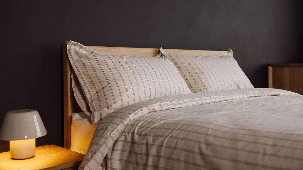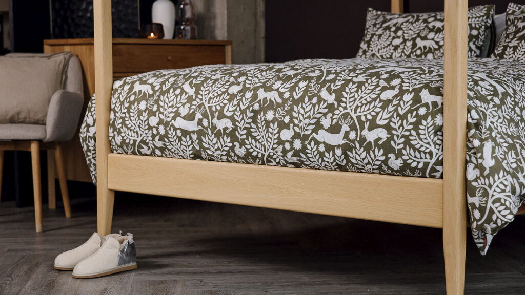 For a neutral base, we have plain brushed cotton in dark grey or stone. If you prefer a more classic style, the Flannel stripe has a timeless feel in two colour ways. The Green Check offers a subtle hint of colour with another classic pattern – great for a cosy cabin vibe! For a more Scandi look, check out the Nordic Woodland green bedding!