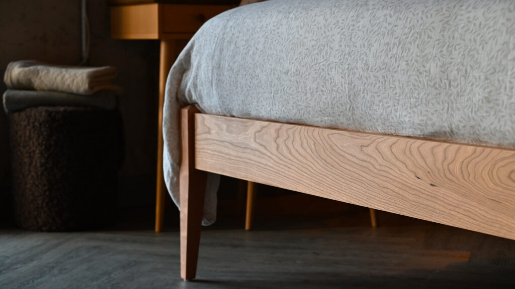 The Cochin is a classic bed design – perfect for traditional or mid-century styling! This bed base boasts a large headboard panel, which allows the natural tones and grains of timber to take centre stage. It also features tapered legs and a tall base, giving it a grand, proud look.