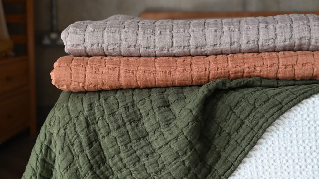 To keep you feeling fresh over warmer nights we recommend natural fibres; such as cotton, bamboo and linen. Lightly textured fabrics have been popular recently – including our soft cotton muslin duvet sets, seersucker and linen bedding.