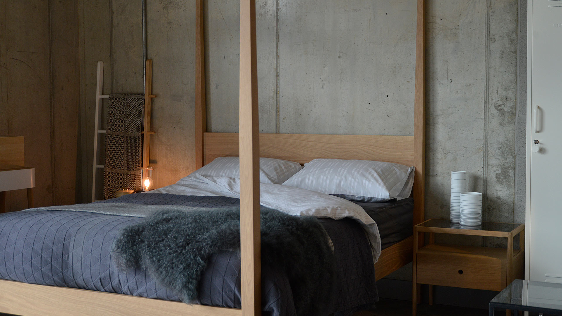 Retro light-bulbs and vintage lamps are also a simple and inexpensive way to create the right atmosphere. Just add a collection of candles on a vintage plate (or in lanterns) to your bedside table, along with a vase of fresh flowers and a pile of second-hand books to complete the look.