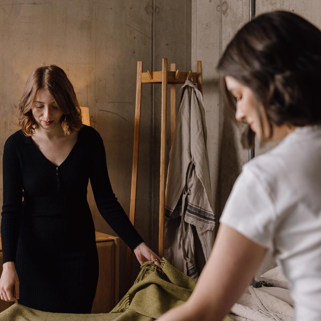 Caro and Paula are largely in charge of buying, keeping our website running and making sure that shop dog Zebedee doesn’t creep onto the showroom beds for a sneaky nap…. They’re not 100% successful!