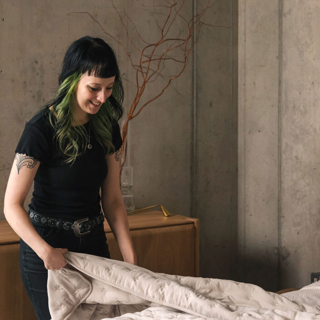 Beth, Hollie, and Nicole have a particular forte for dressing our beds, making each one look cozy and inviting. Donna, Hollie and Nicole are the regular Saturday team, they are here to welcome you to the store and help you to find the bed or mattress which will suit you best.