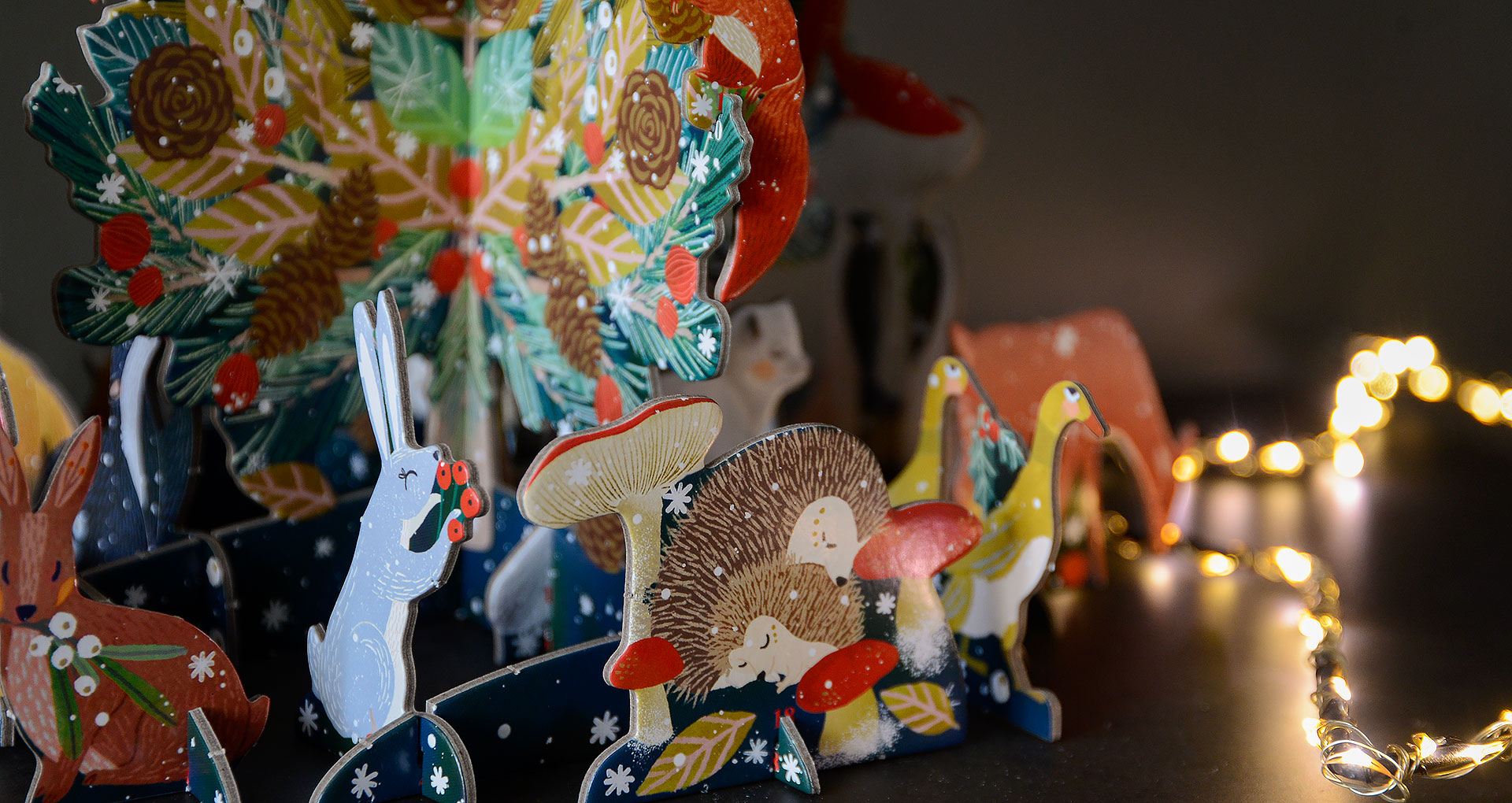 A whimsical 3D advent calendar. Find and pop out the festive part, match the number and construct and decorate your festive woodland scene! A fun new way to count down to the big day, we think this would be a lovely gift for loved ones or a festive daily activity with the kids! The flat shape makes it perfect for posting directly to friends and family (see dimensions tab above).