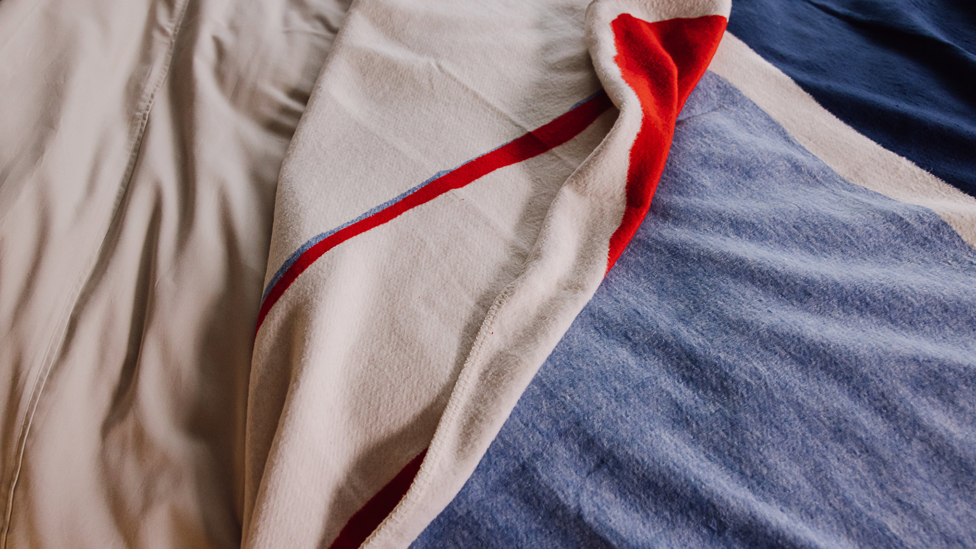 Red & Blue: a very pale, neutral background, overlaid with abstract colour blocks in bright red, navy blue and pale denim blue Sage & Pink: a very pale, neutral background, overlaid with abstract colour blocks in dark green, sage green and pale pink Charcoal & Yellow: a very pale, neutral background, overlaid with abstract colour blocks in dark charcoal grey, pale grey and bold ochre yellow