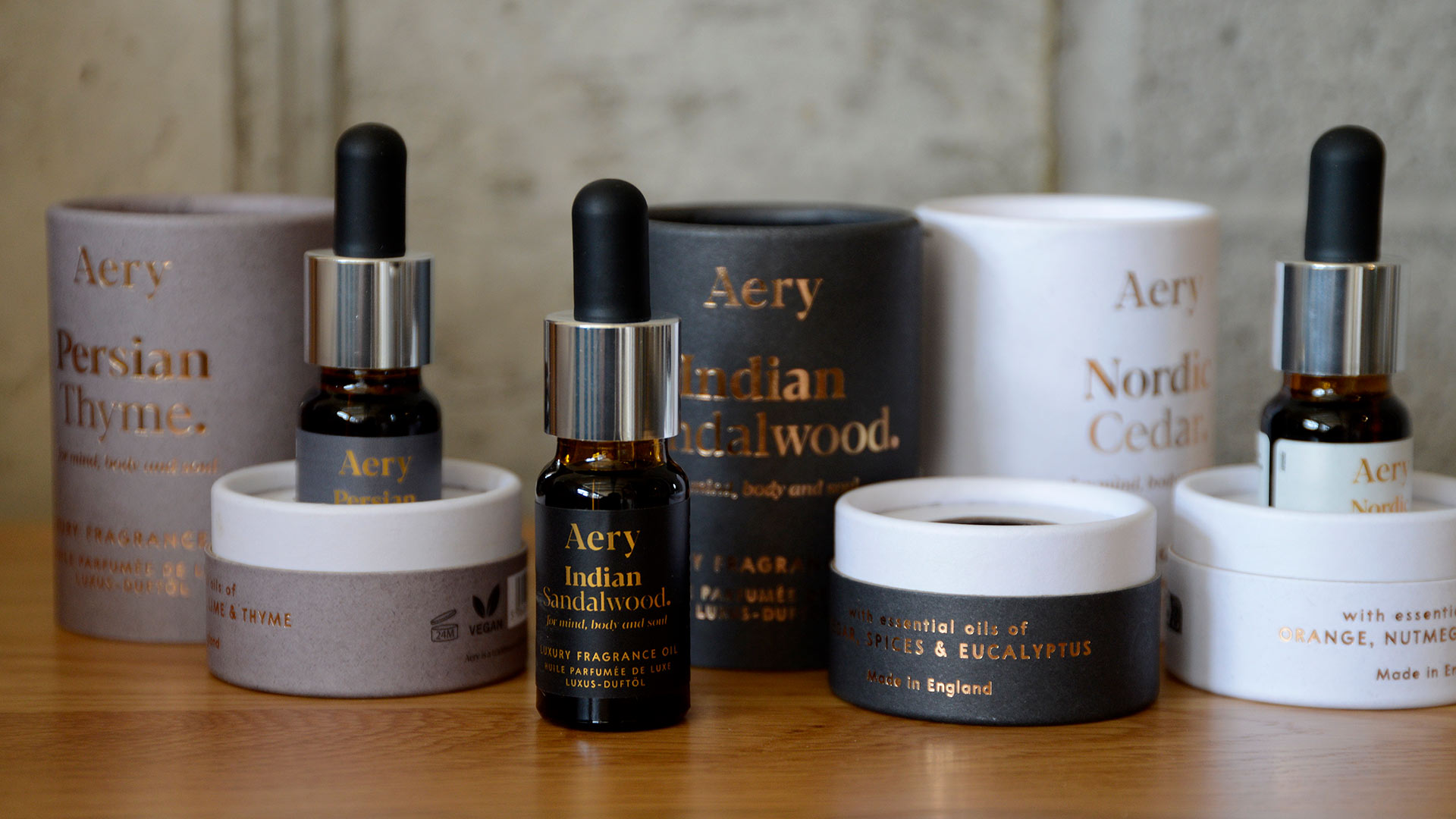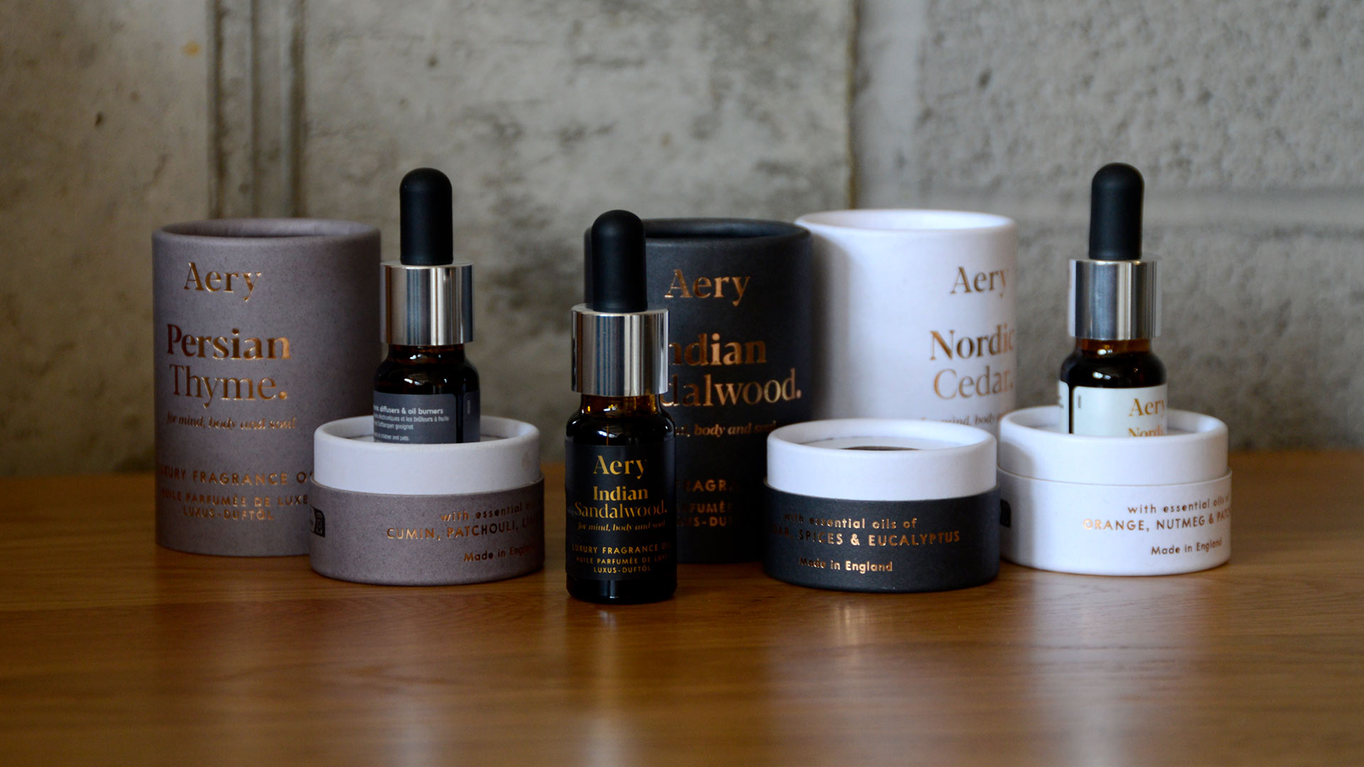 Modern Aery fragrance oils, available in three subtle, complex scents. The perfect way to bring atmosphere and fragrance to any room, these oils make the perfect gift for a friend, or as a treat for yourself. Complete with sustainable, recyclable paper packaging and stylish design.