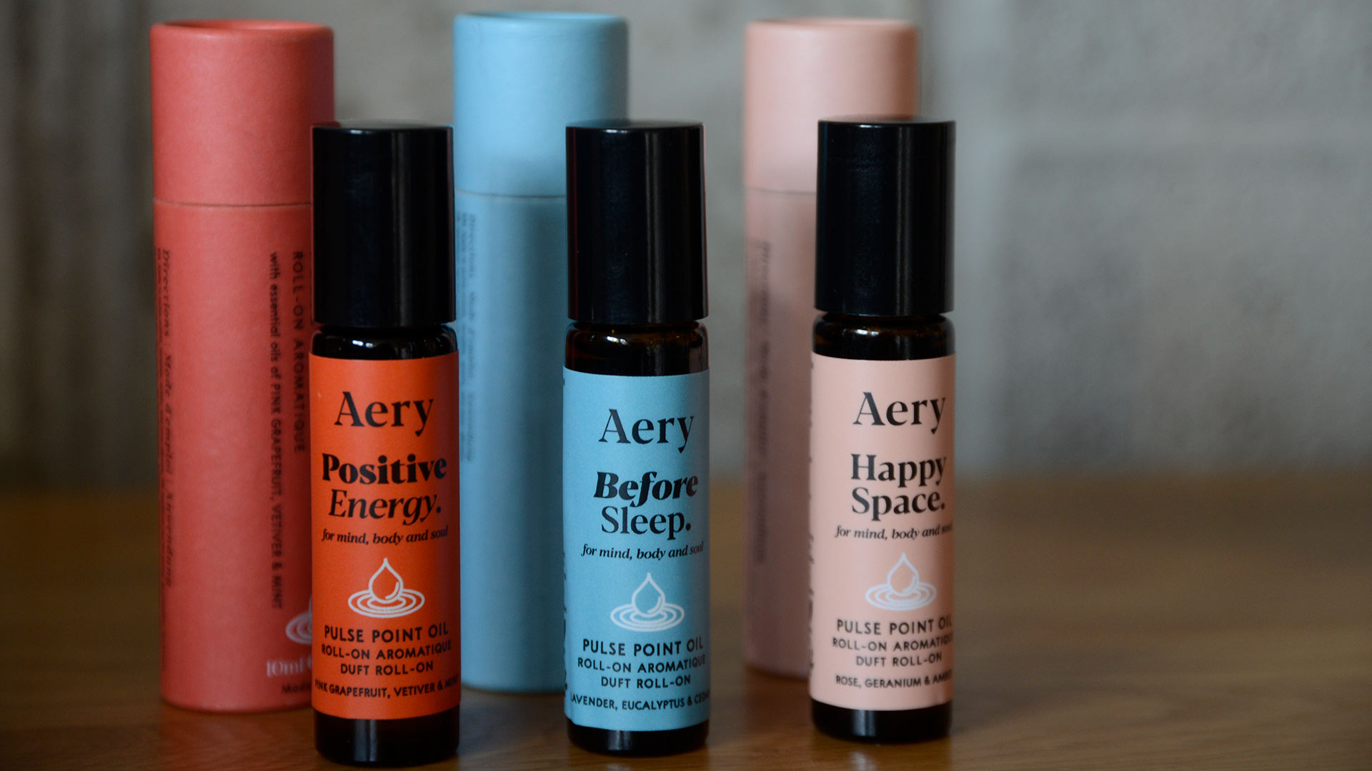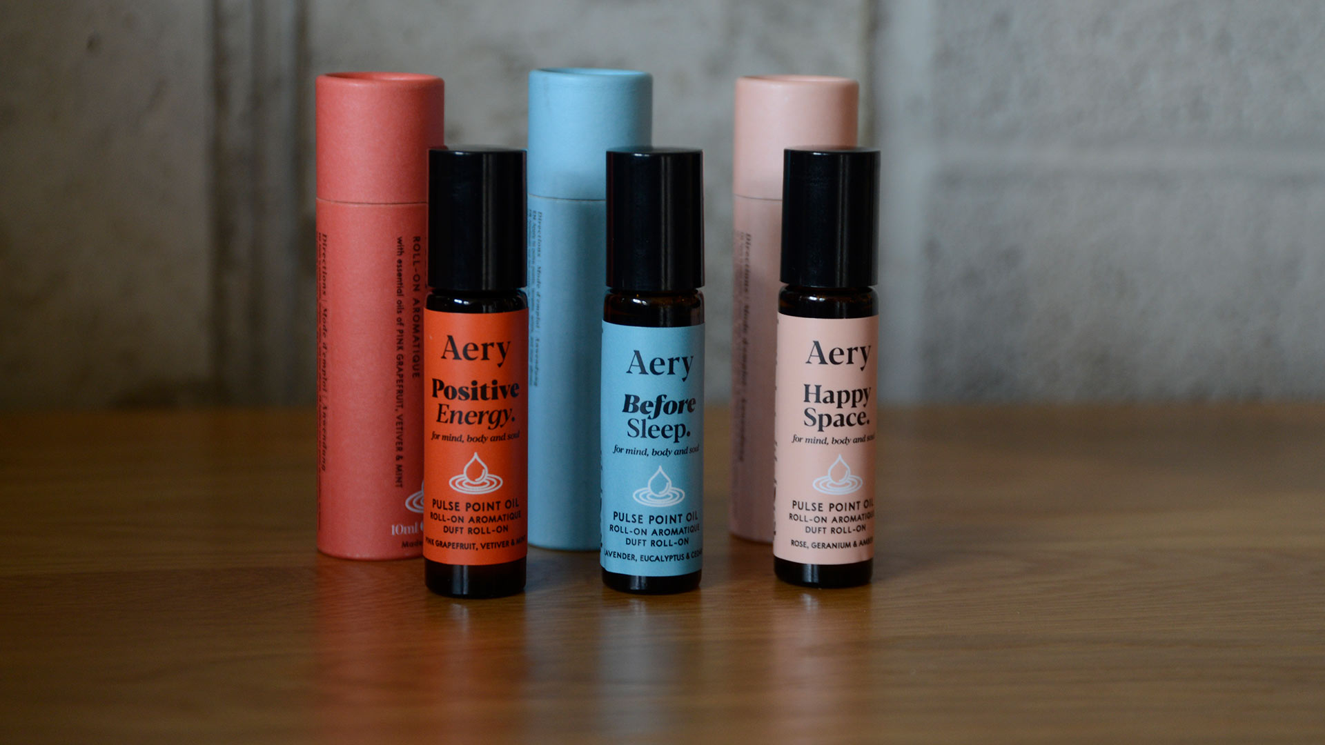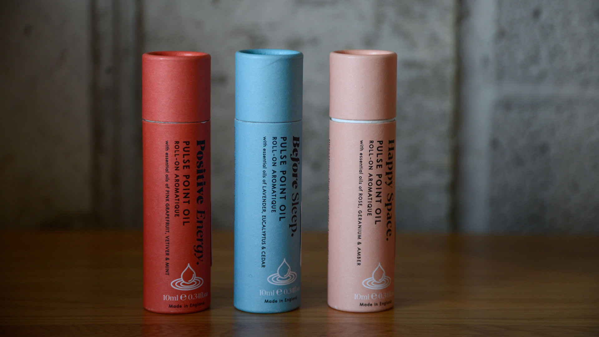 Happy Space: Perfect for use on a relaxing evening. Contains essential oils of rose, geranium and amber. A floral, subtle scent. Positive Energy: Ideal for use to wake you up for the day. Contains essential oils of pink grapefruit, vetiver and mint. A citrusy, uplifting scent. Before Sleep: The perfect partner at bedtime. Contains essential oils of lavender, eucalyptus and cedar. Relaxing and aromatic.