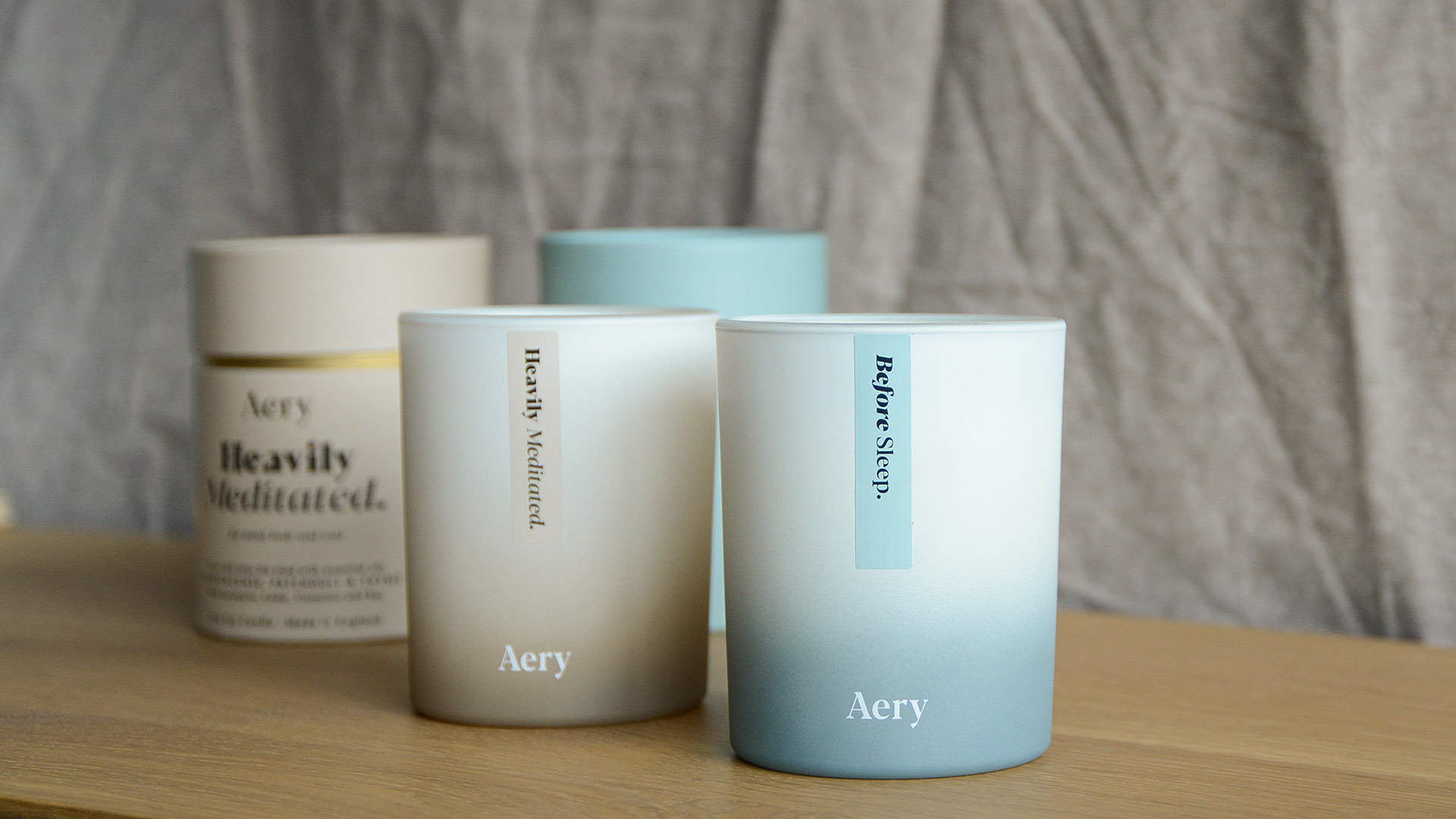 A collection of relaxing scents in ombre frosted glass holders. Fragranced candles and diffusers, available in two beautiful fragrances: Before Sleep & Heavily Meditated.