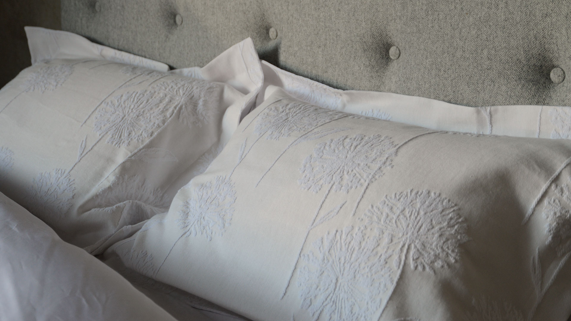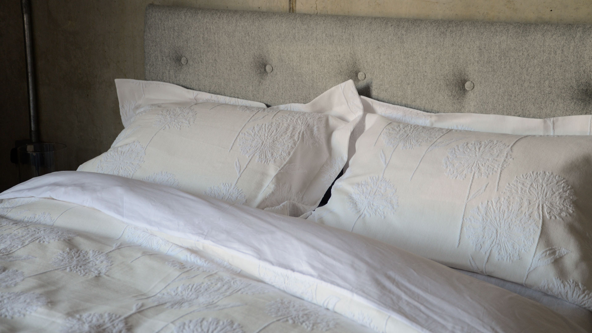 A gorgeously textured, floral relief design adorns this beautiful Allium duvet set. A luxurious design that compliments both traditional and modern interiors, perfect for creating that hotel feeling at home. This raised floral patterned duvet set is made with a woven jacquard cotton fabric, backed with 300 thread count cotton percale; ideal for a dreamy night’s sleep. Made from 100% cotton.