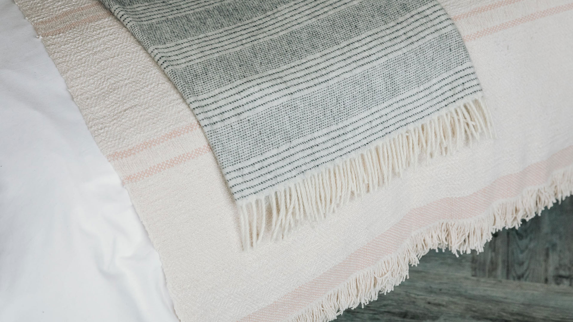 The Andas soft cotton blanket in ivory with a stripe pattern, is now available in two new colours: olive or blush pink. Large, cosy throws in pure cotton. The Andas soft cotton blanket is a real favourite at Natural Bed Company, and makes a lovely treat for yourself, or a gift for a friend.