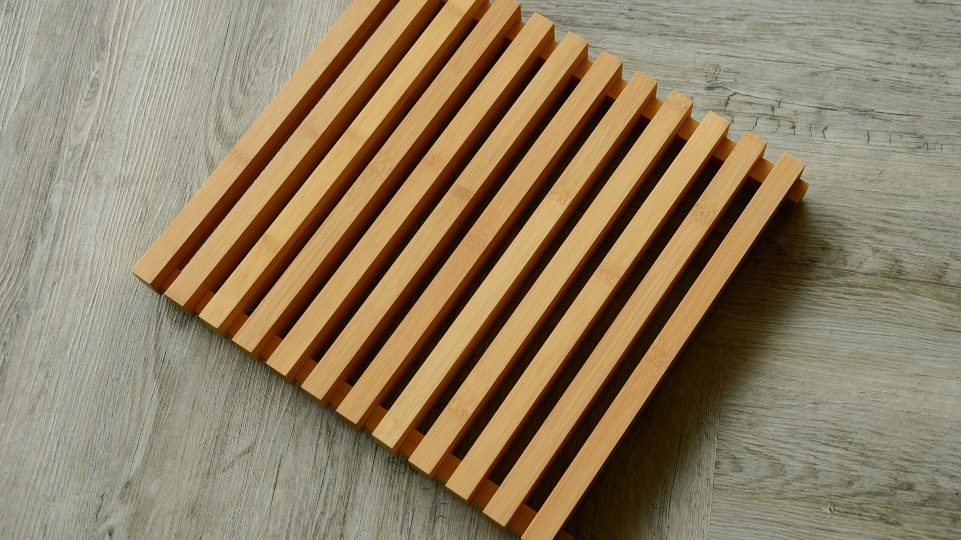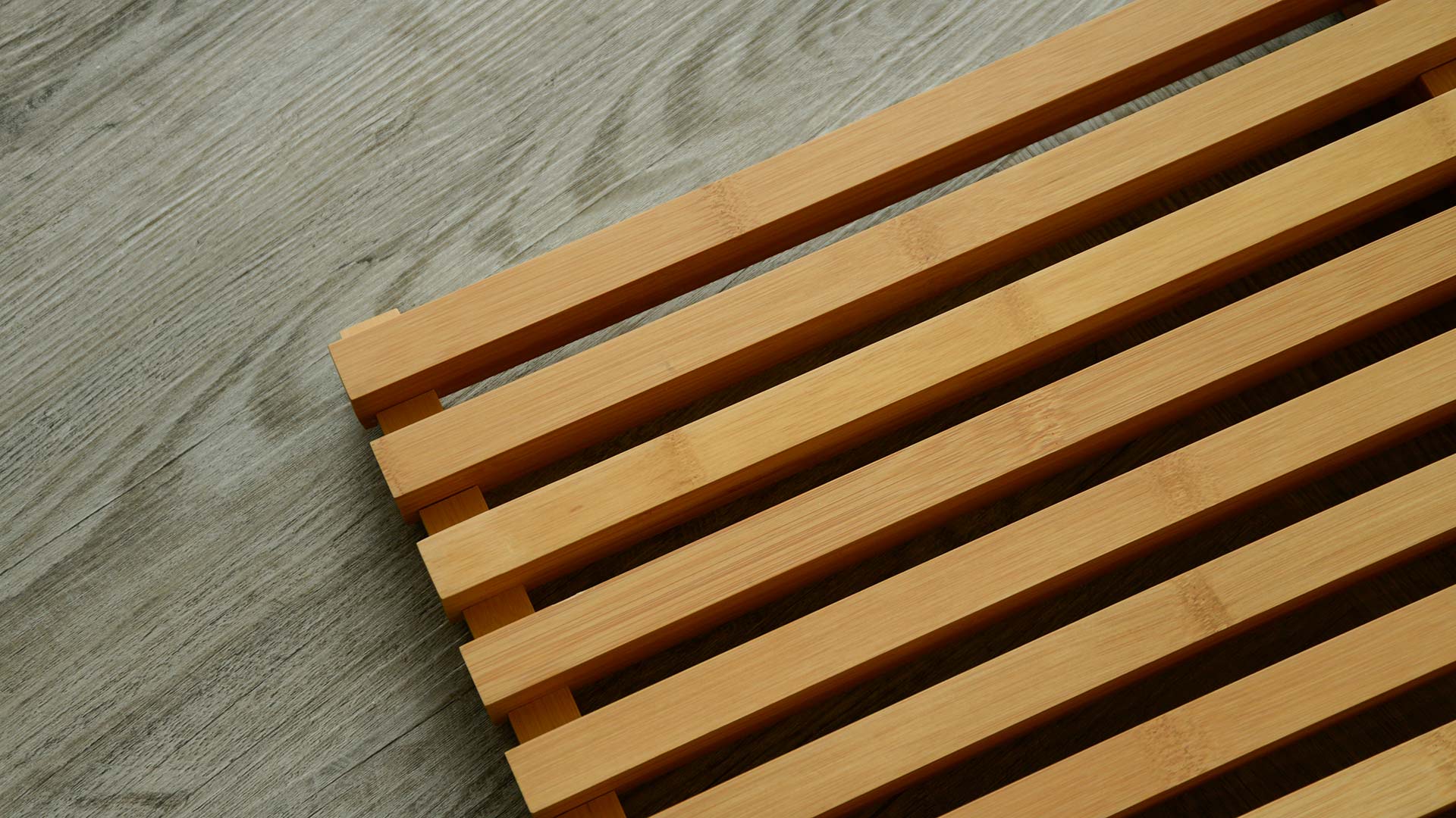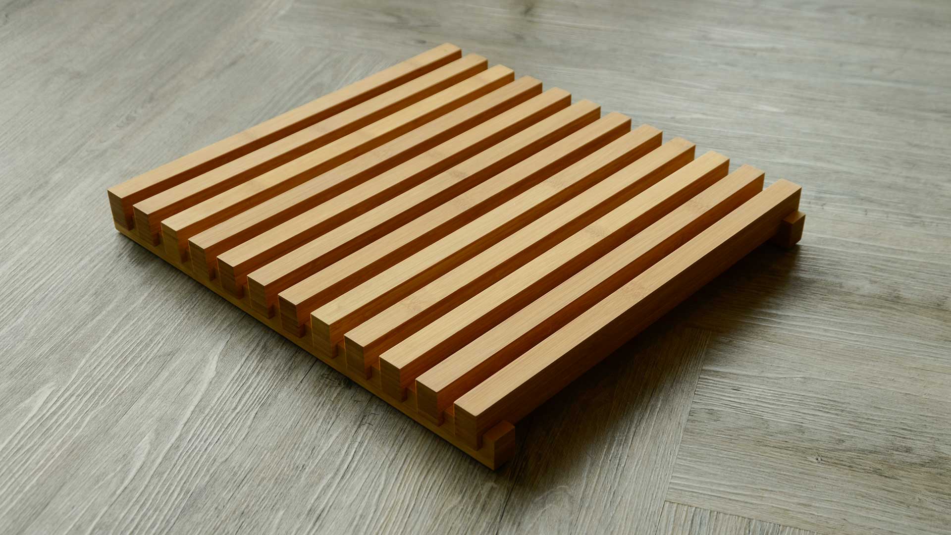 These contemporary bamboo duckboards are made from sustainably harvested, honey coloured bamboo from the Anji mountains of China, finished with a matt, water resistant lacquer. The edges look crisp but they are finely hand sanded to make them soft to the touch. Also comes with silicone feet to stop it slipping.