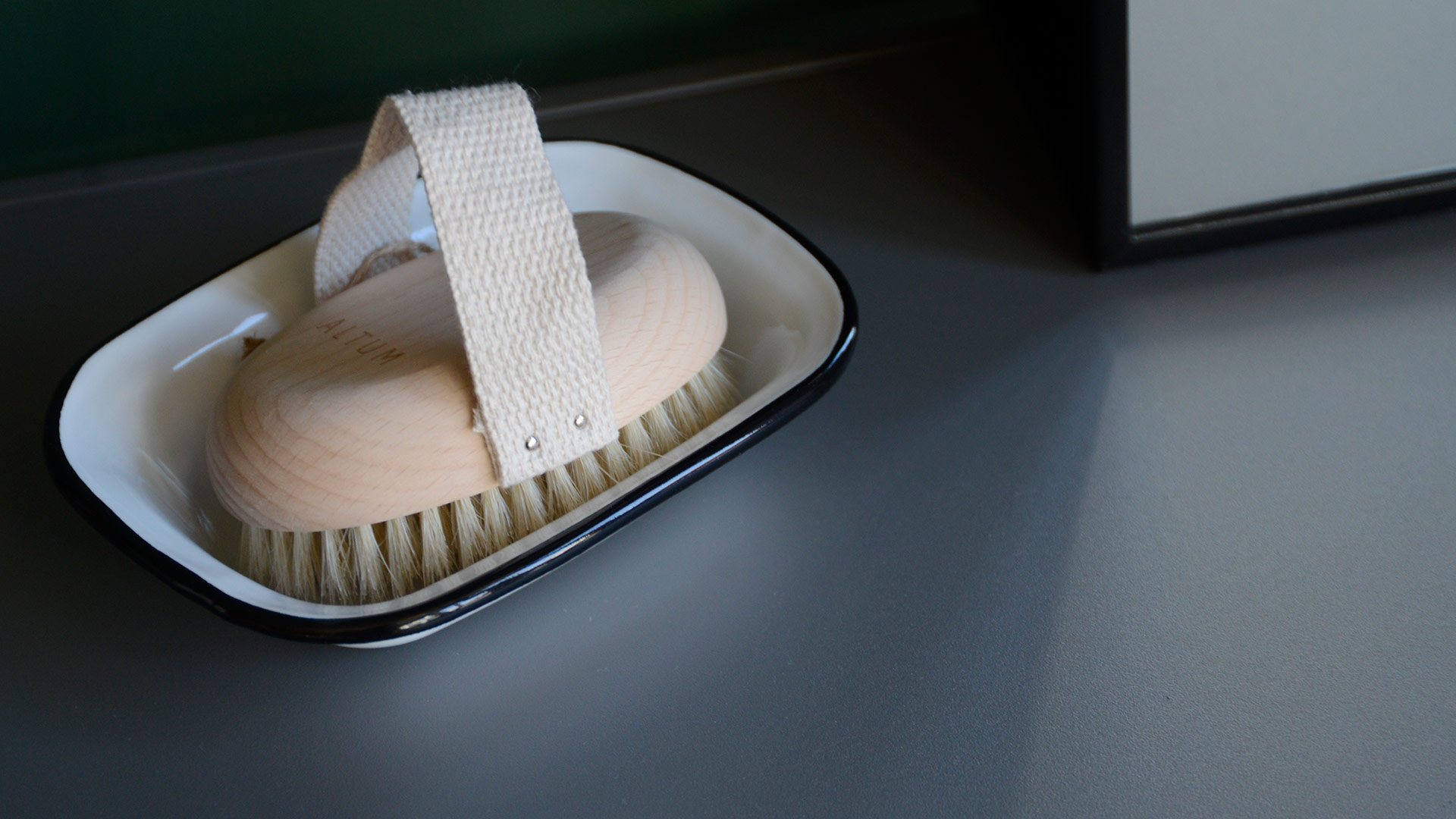 (NB: Don’t brush on very sensitive, irritated or sunburnt skin).