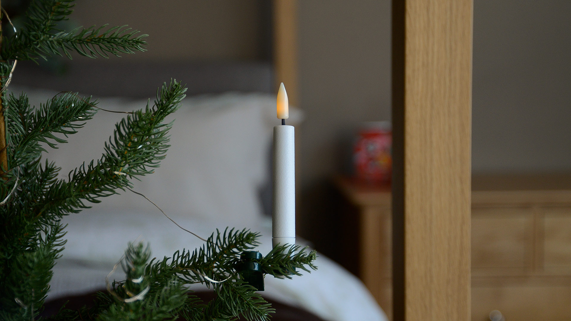 Candles – white ‘candle’ pillar and warm yellow, LED ‘flame’, each requires 1x AAA battery (not included)