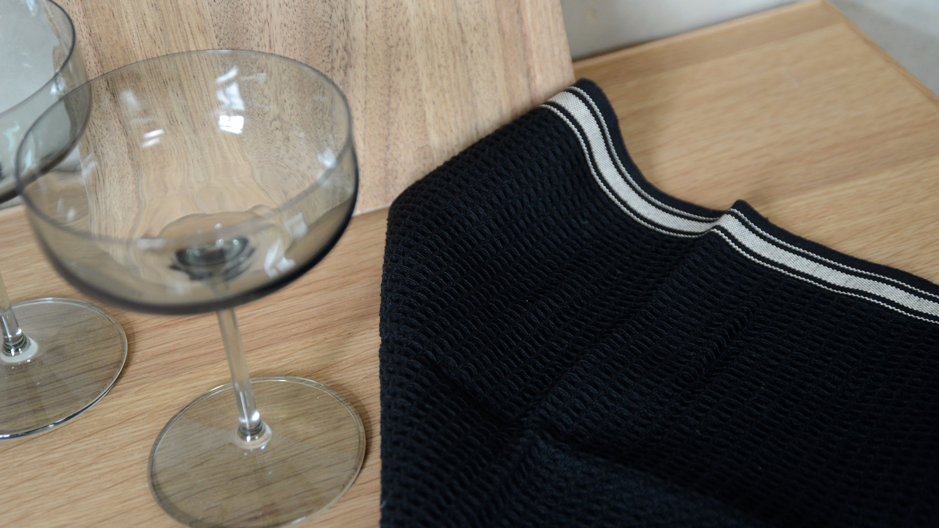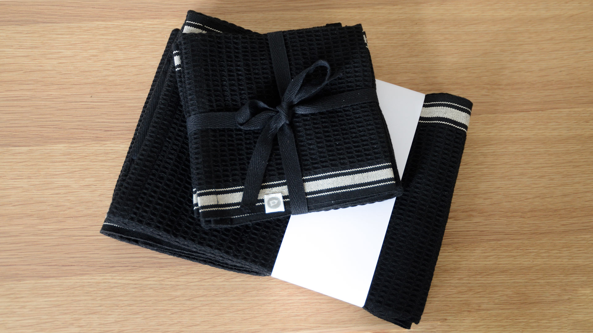 Crafted from 100% cotton, these modern, minimal tea towels and dish cloths are available in stylish black & beige. With a textured, almost ribbed feel, these towels and cloths are finished with a band of beige stripes to one edge. An easy way to add a spot of character to any kitchen. Prices include a set of two tea towels, or a set of two dish cloths.