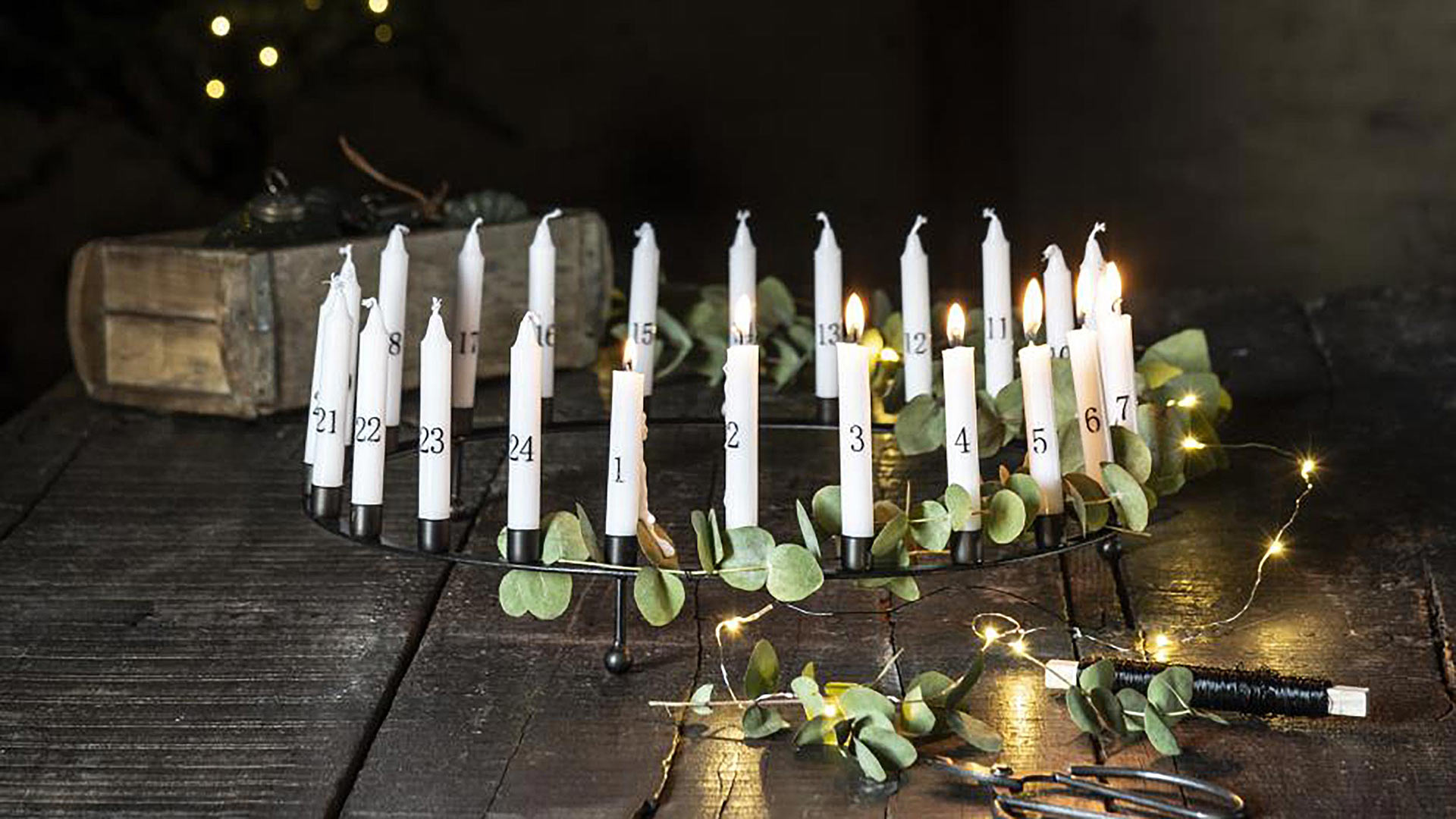 A modern and stylish, black candle holder centrepice that will add impact to any dining table. A circular candelabra that holds 24 short slim taper candles – it can also be used as an advent calendar. Dress with holly or ivy for the perfect Christmas table, add eucalyptus for a pretty summer centrepiece. This black candle holder is a lovely treat for yourself, or a gift for a friend.