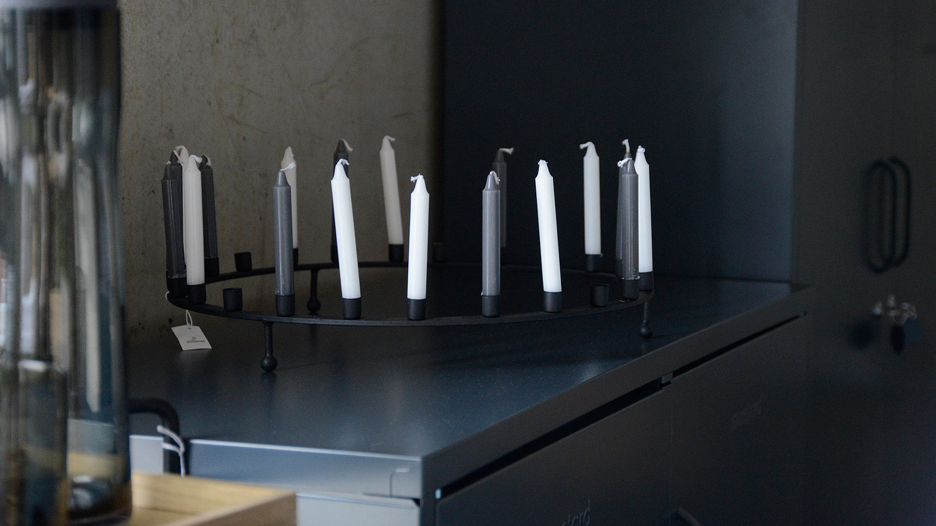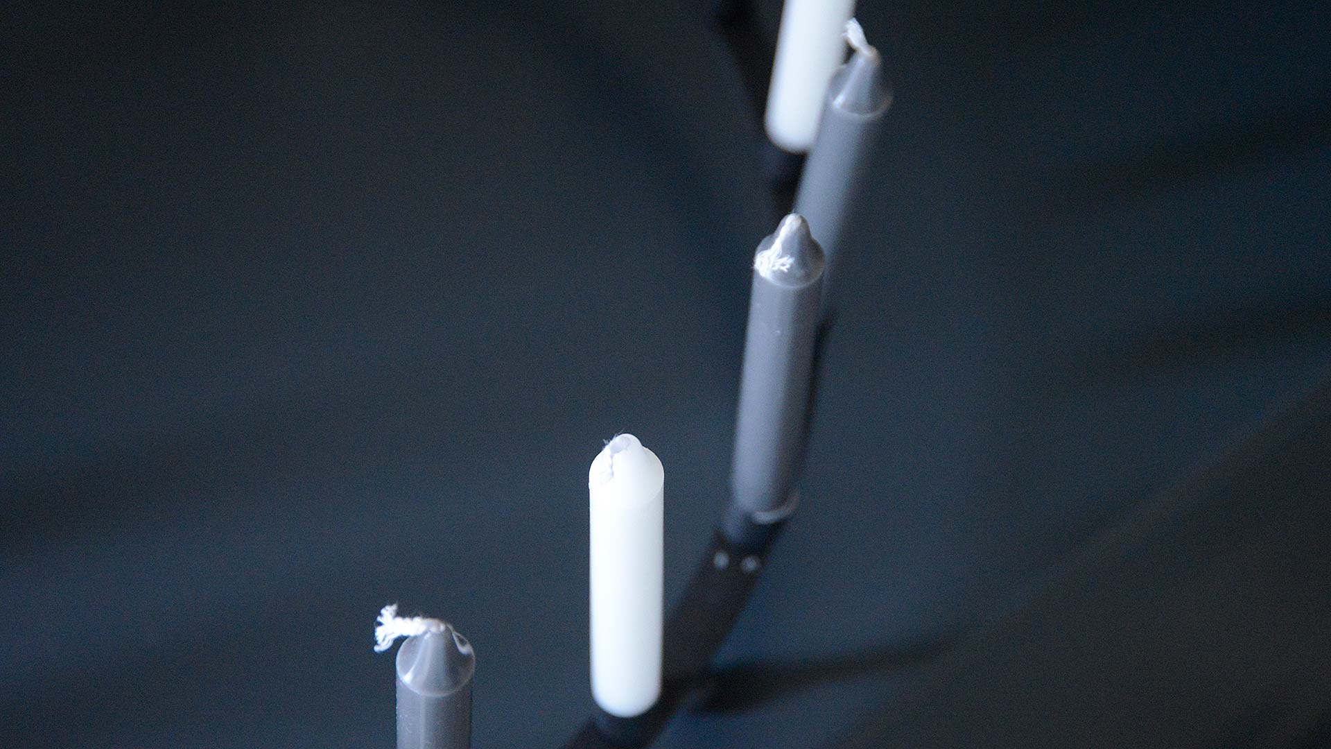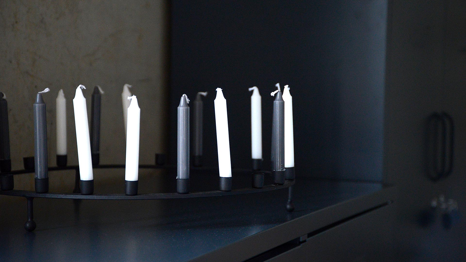 Modern and stylish black candle holders that hold 24 short slim candles. 1x set of 10 white or grey candles included – please specify your preference in the notes. (Additonal sets of candles can be purchased at £6 per set – please call us to add)
