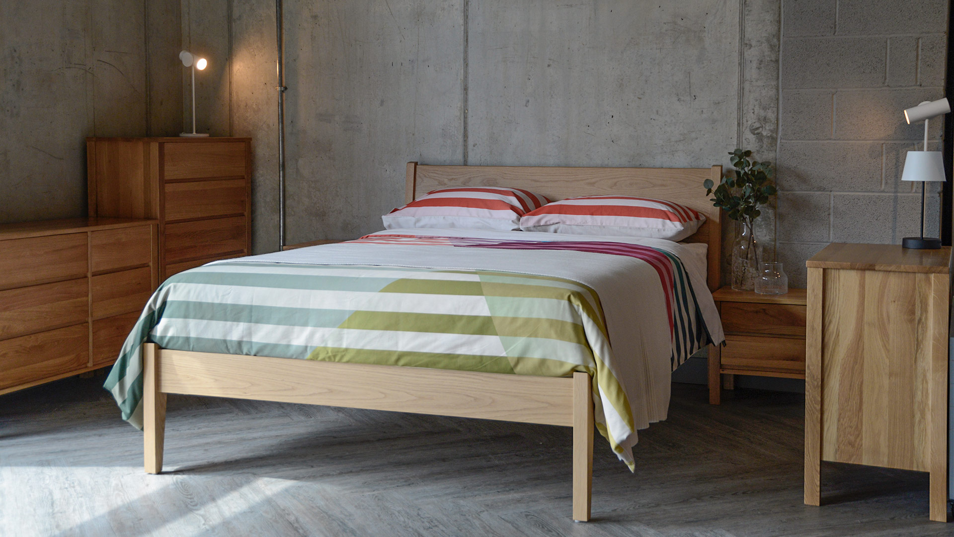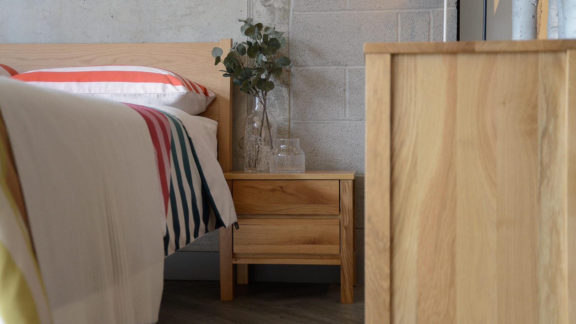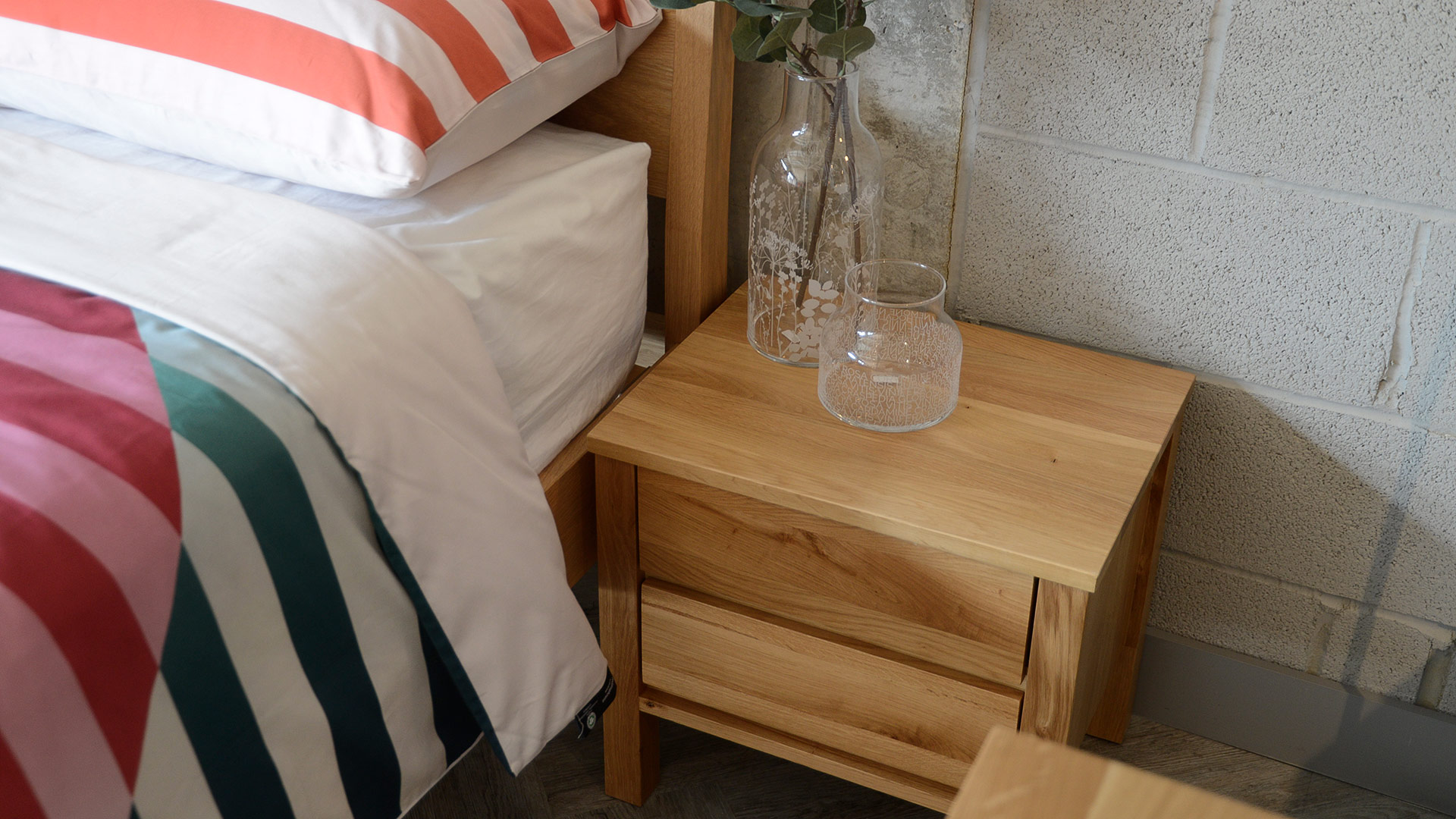 Our Shaker collection will work well with any of the solid oak beds in our collection. However, we think it looks particularly good with our Malabar, Zanskar and Sahara beds.