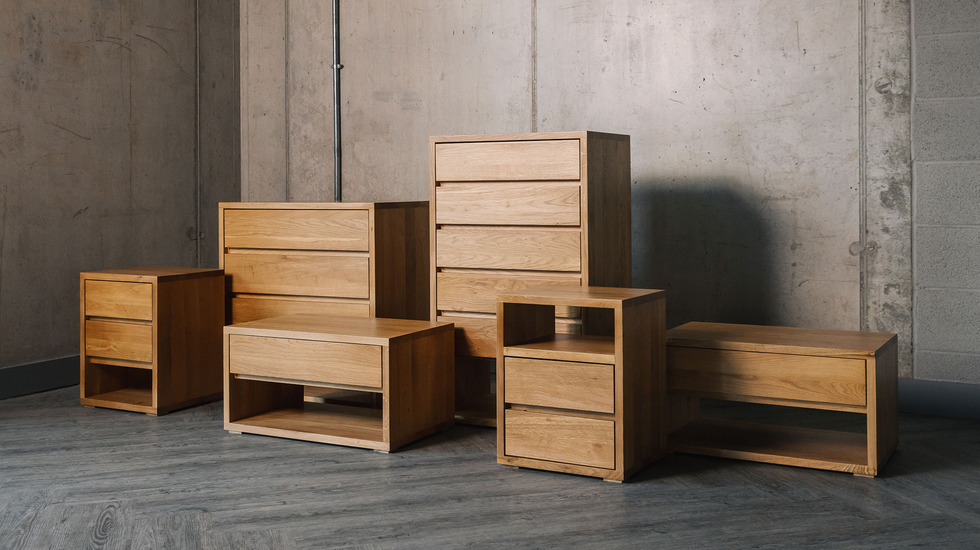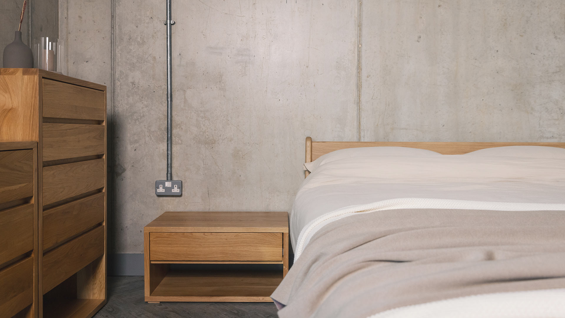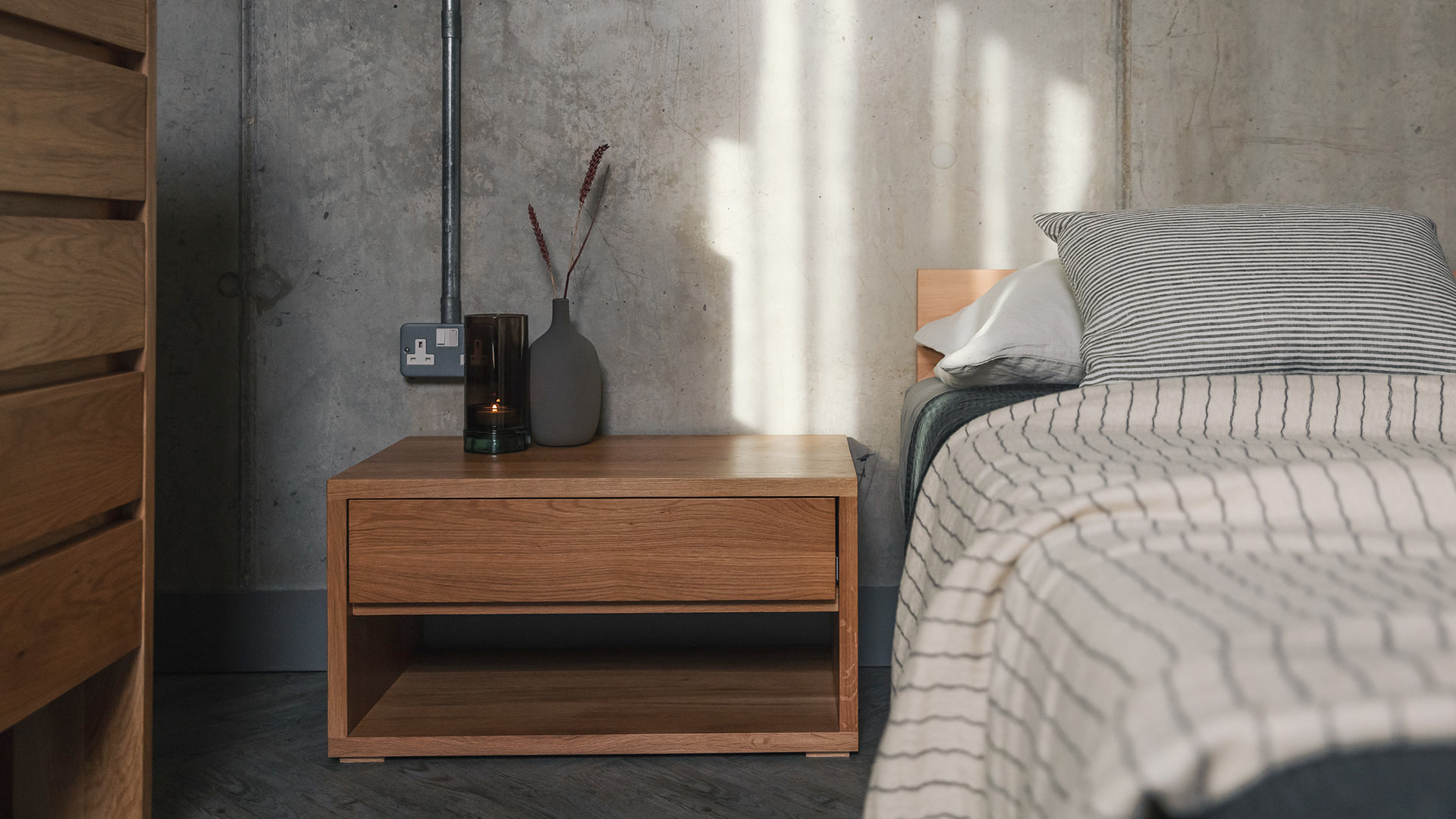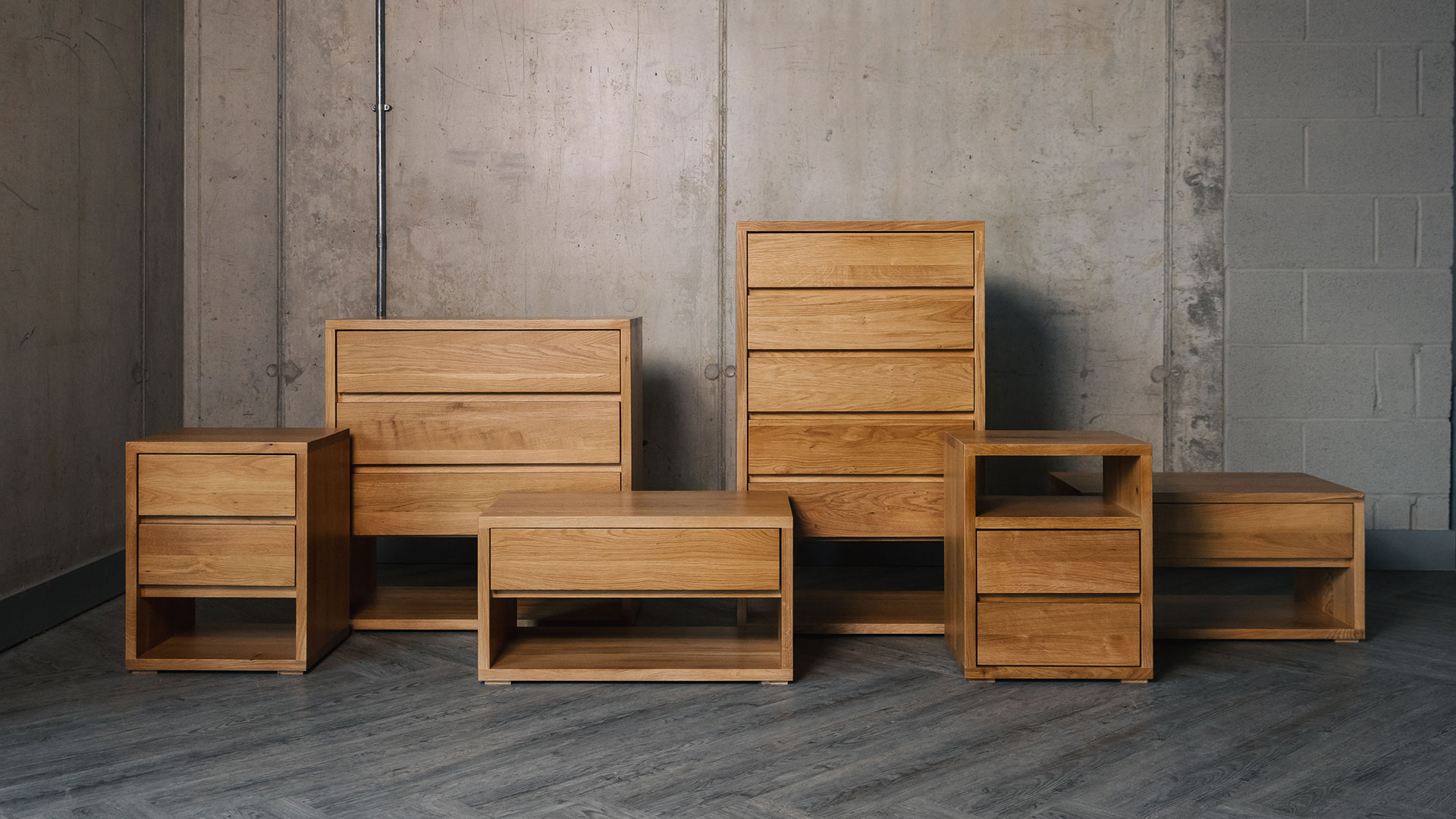 Cube oak bedside drawer unit – 67.5cm wide Price includes delivery within the mainland UK