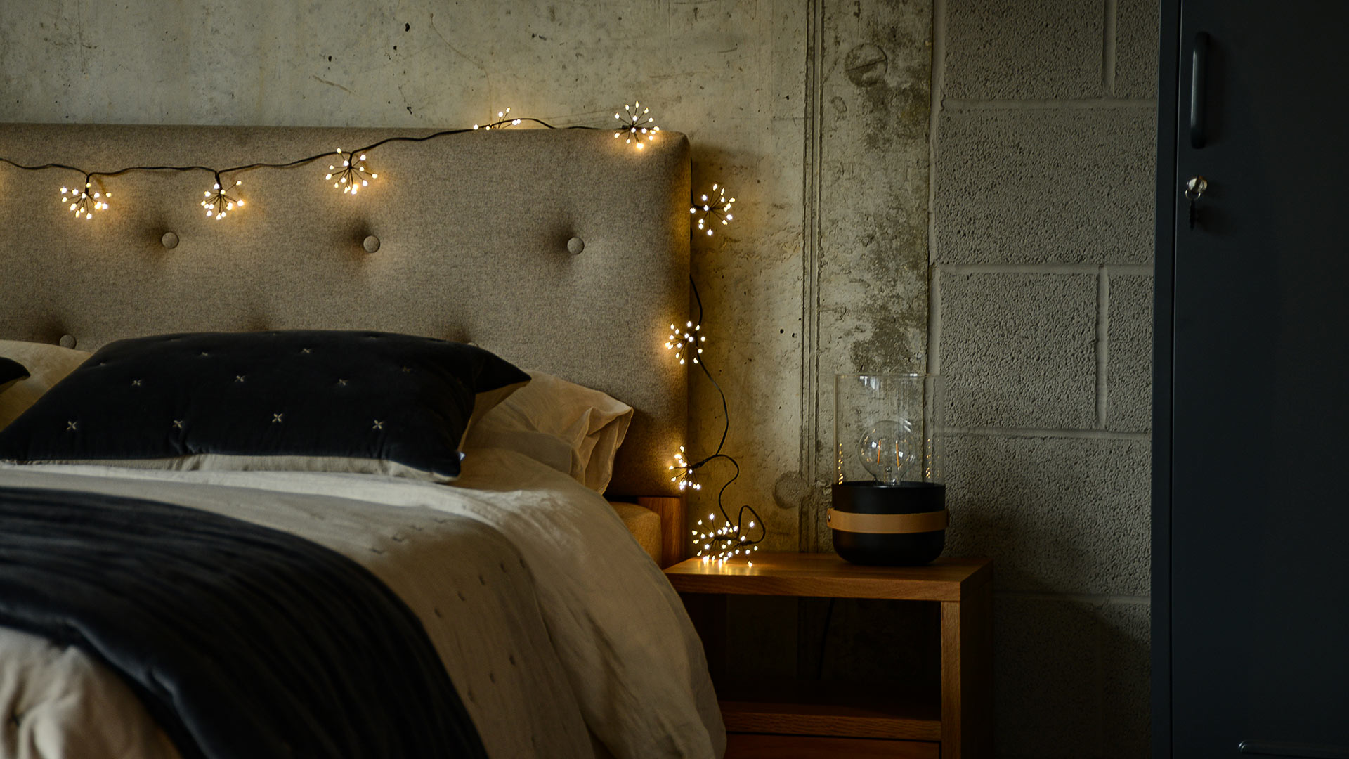 This stylish, black starburst light-string is made up of clusters of warm white, mini lights on adjustable black wires. Packed in a stylish gift box.