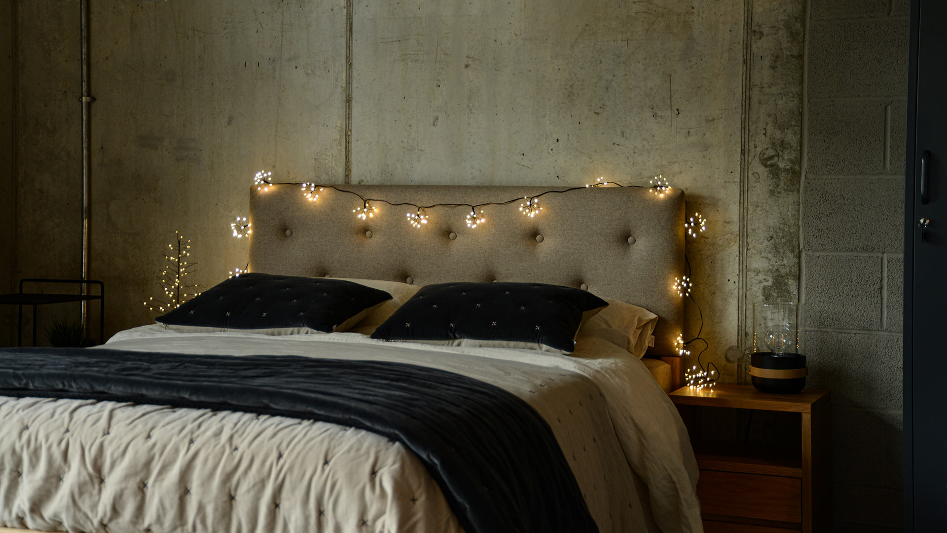 This stylish, black starburst light-string is made up of clusters of warm white, mini lights on adjustable black wires. The perfect decoration wrap around a bed, or outline a window, or even as a centrepiece at Christmas dinner. Pair with similar black and gold decorations for a modern festive look, or match with greens and whites for a more cosy, rustic Christmas feel.