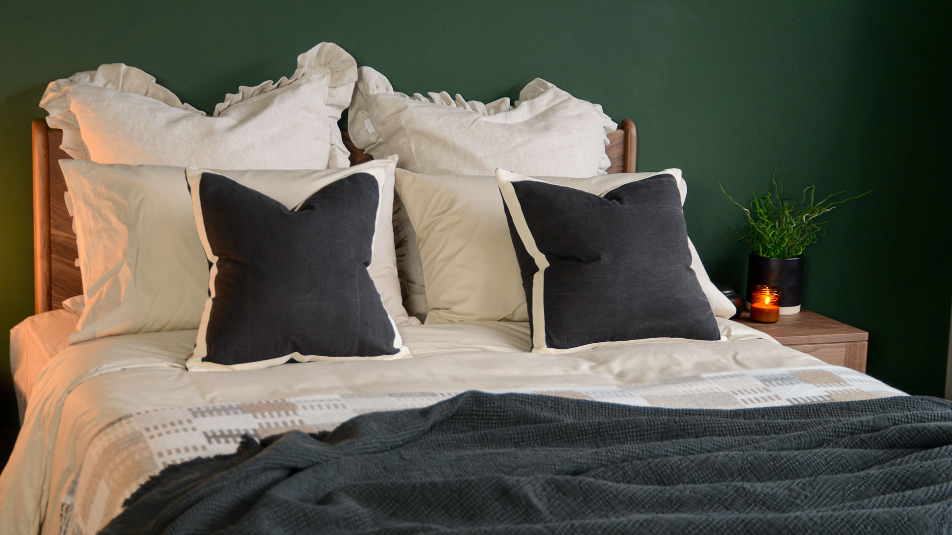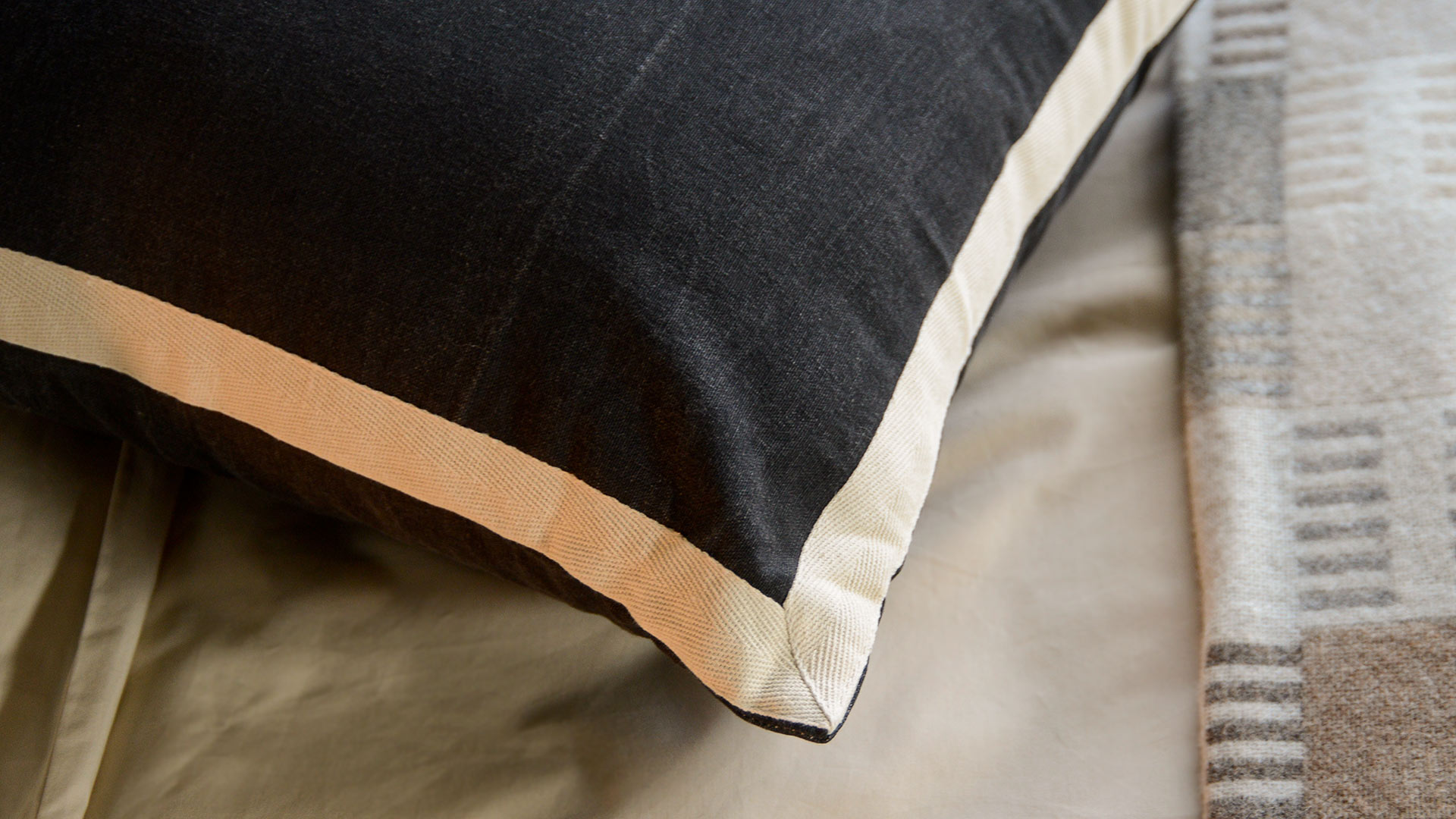 Perfect on either the sofa or bed, these minimal and stylish black textured cushions are an easy match for any modern room scheme. Simply finished with an ivory border, they boast a 100% cotton cover, with a polyester lining and feather pad.