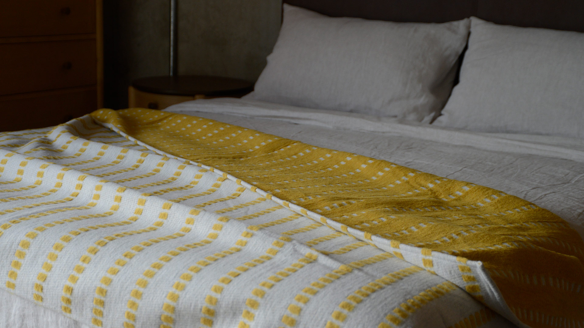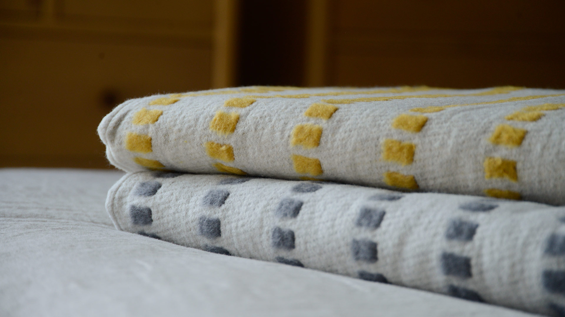 Beautifully soft and gently textured throws available in 2 colour ways – deep grey and rich yellow. The ideal size for draping over the back of the sofa, or across the end of the bed. The clean lines and contemporary feel to this design compliments the traditional softness and sewn hem detail perfectly.