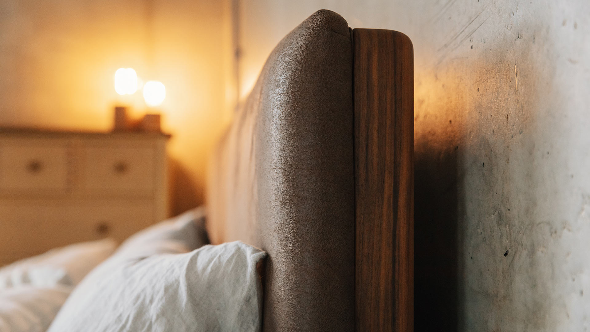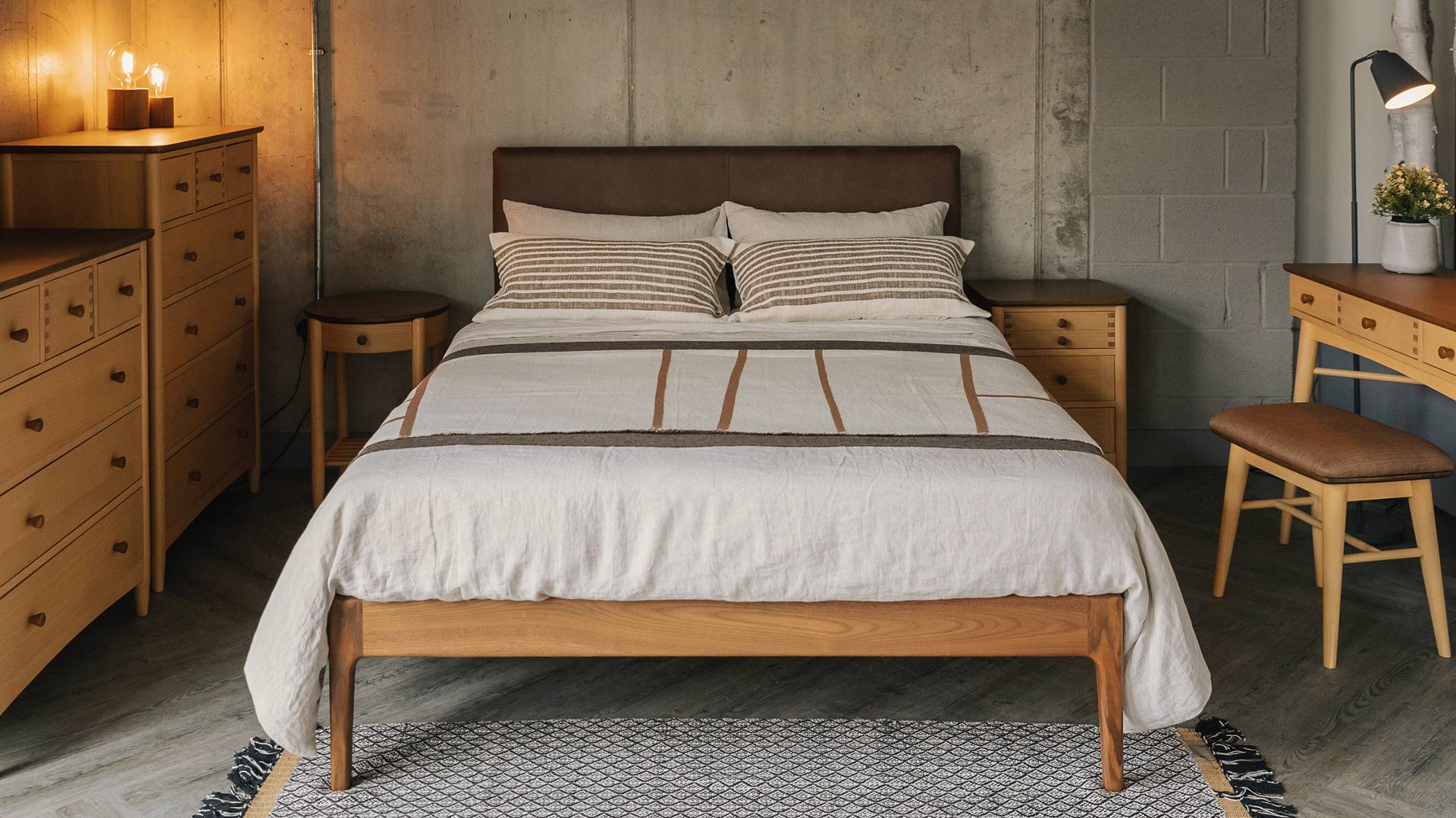 Paying homage to mid-century styling, our Bloomsbury is made in walnut in the photos above. Complete with a buttoned faux leather headboard, upholstered in Vaquero Saddle.