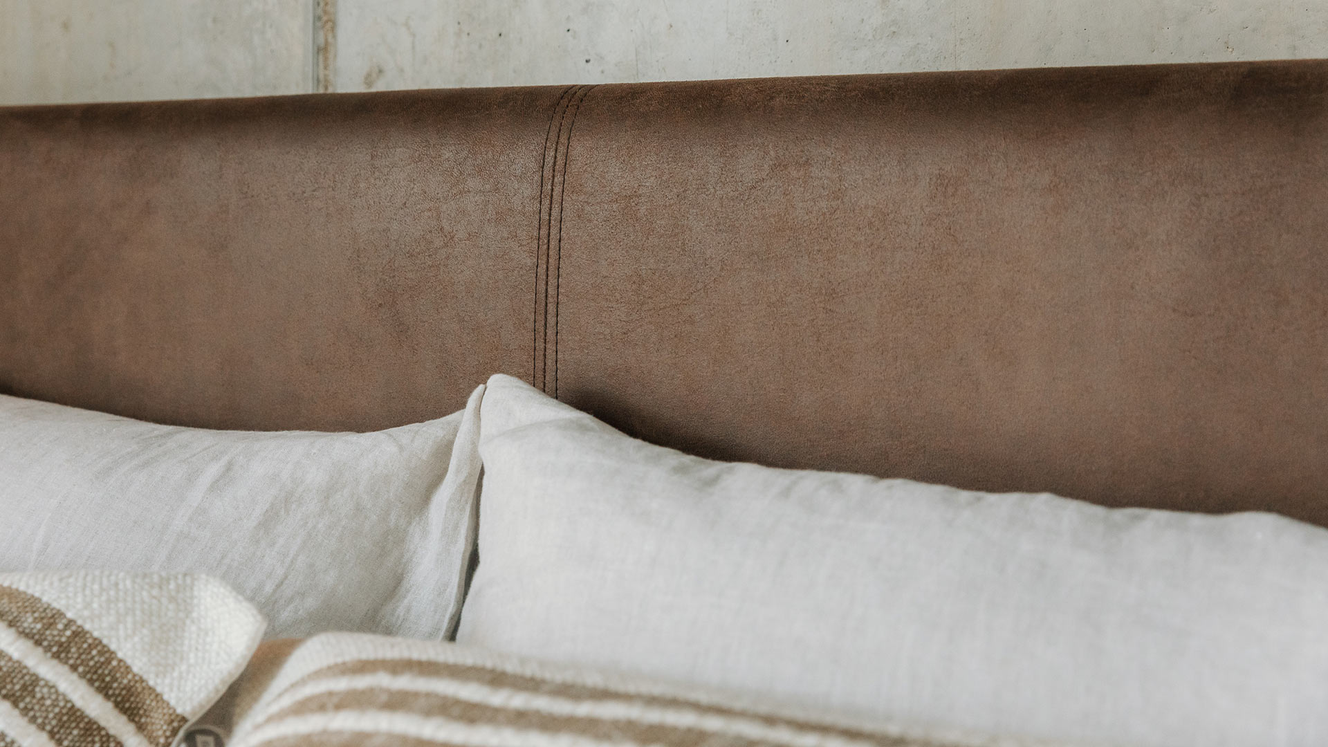 Part of our Camden collection, you can customise the Bloomsbury thanks to its fabric headboard. Upholstered here with a seamed, faux leather headboard, Bloomsbury is a stylish, modern bed. Not only is the handcrafted frame available to order in your choice of hardwood timber; you can also choose from a range of fabric options for the upholstery. Here, we showcase the latest addition to our range; Vaquero.