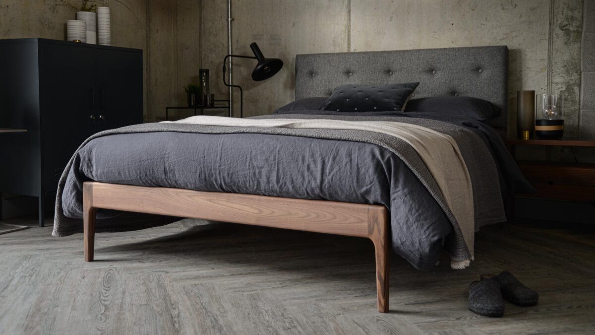 Part of our Camden collection, the Bloomsbury offers more customisation thanks to its headboard. Not only is the handcrafted frame is available to order in your choice of hardwood timber, but you can also choose from a range of fabric options. Here, we showcase our premium fabric option; Parquet. The pictures show the Bloomsbury bed with a wool headboard, upholstered in Parquet Grey and Amatheon Linen.