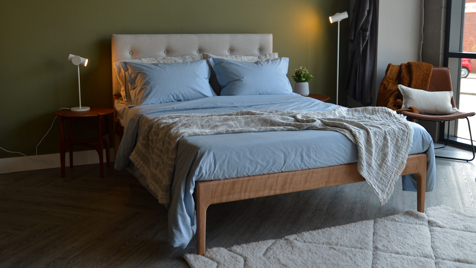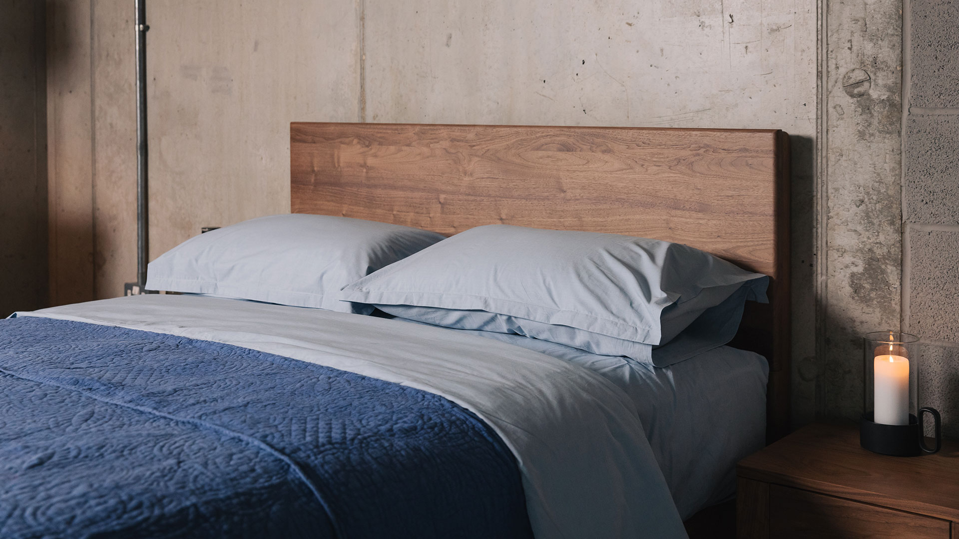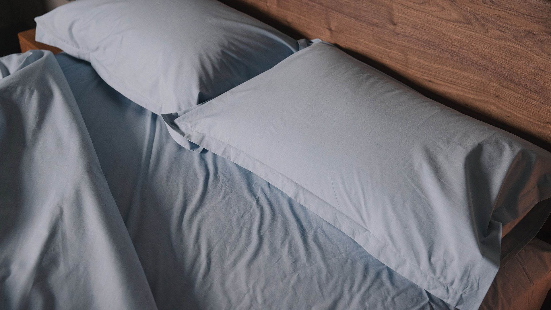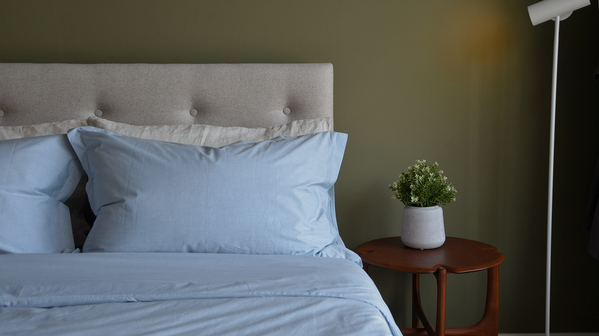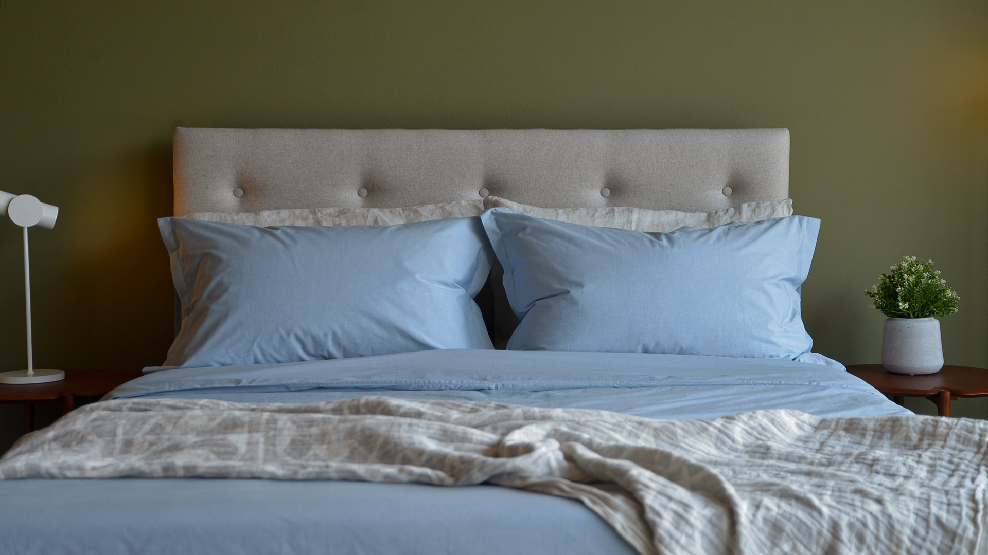 This bedding is fresh, soft and made from 100% cotton percale | 200 thread count | chambray Certified Made in Green | Oeko Tex