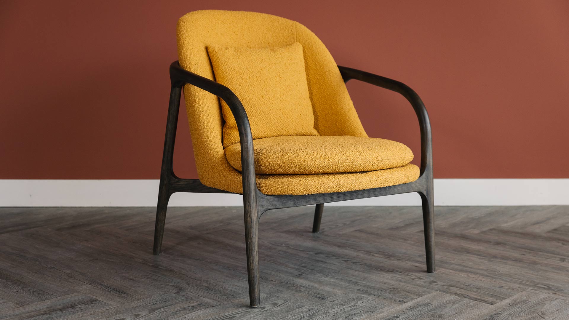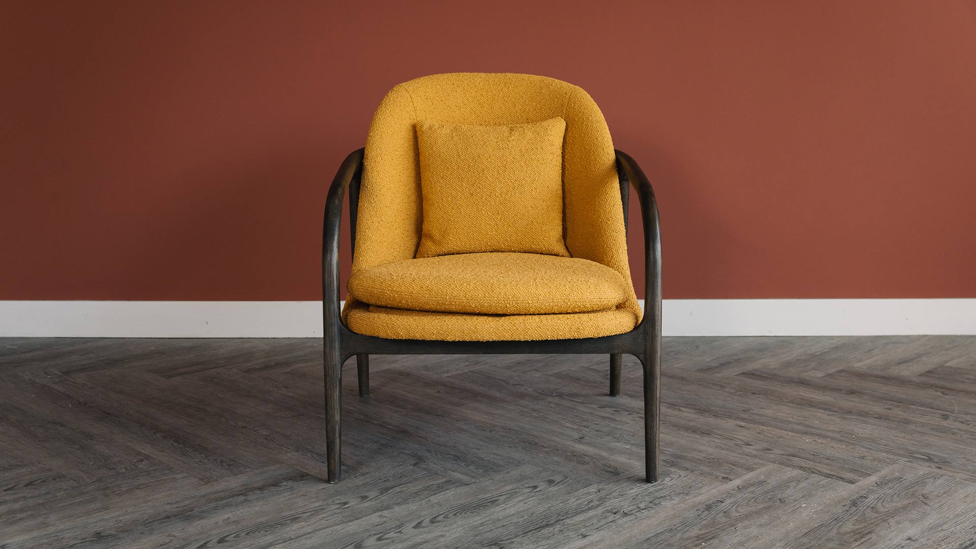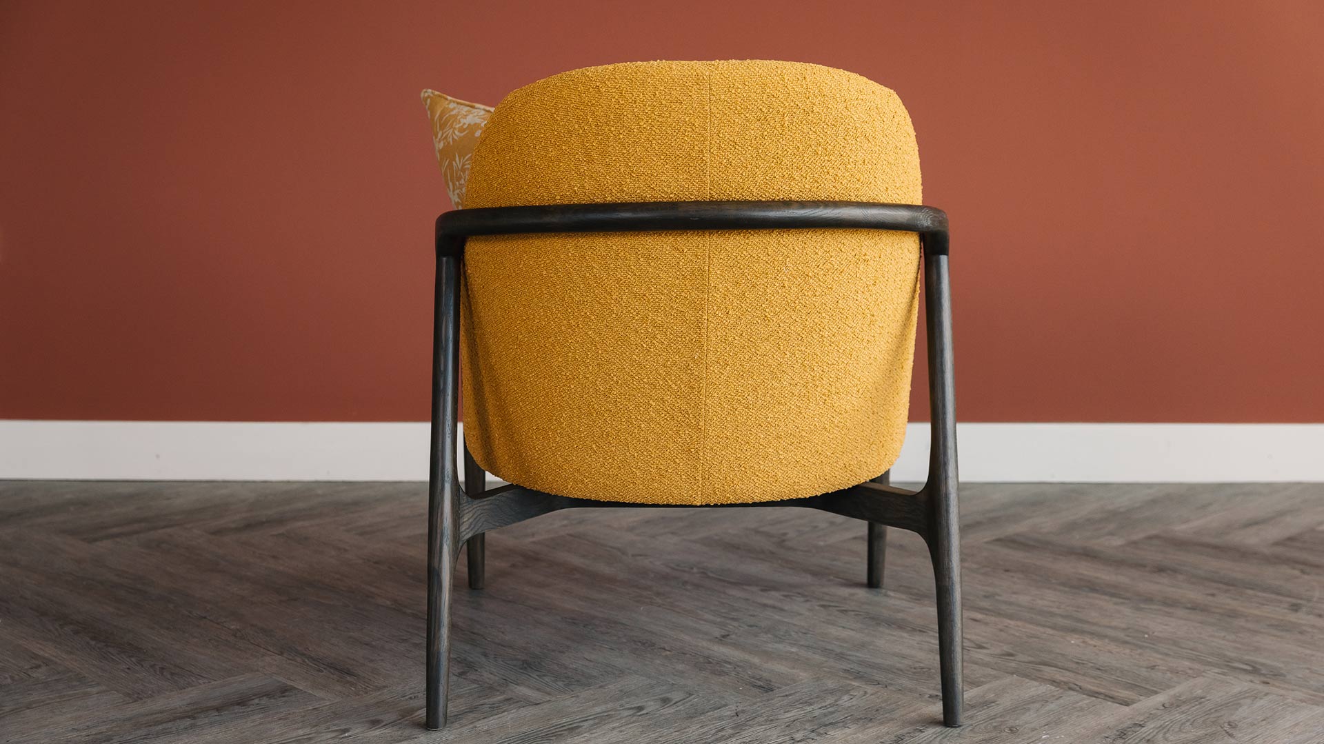 With a gentle, curved profile, these boucle armchairs are a perfect addition to any living space. Available in either bold ochre yellow or neutral pale taupe in a soft and textured boucle fabric. These retro chairs also boast a deep seat for comfort and come with a matching cushion. Pop an additional cushion on there to add a bit of personality, or just enjoy the stylish boucle on show. A casual, retro style with a contemporary twist – the perfect partnership.
