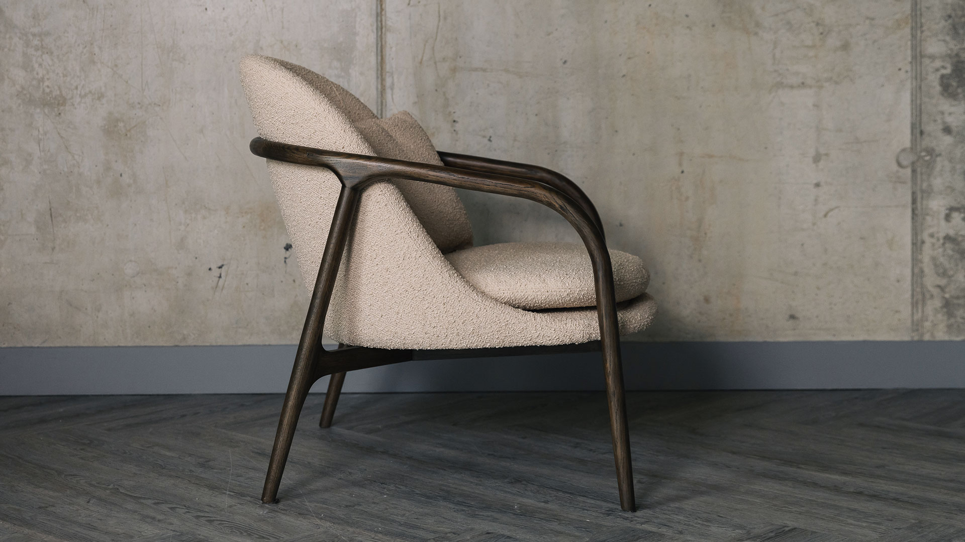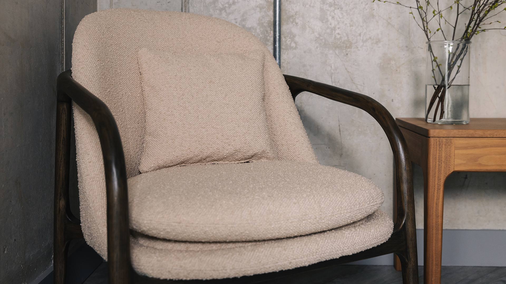 These boucle armchairs are available in two different fabric colour options, both with dark wood frames. Choose your favourite above before adding to the basket.