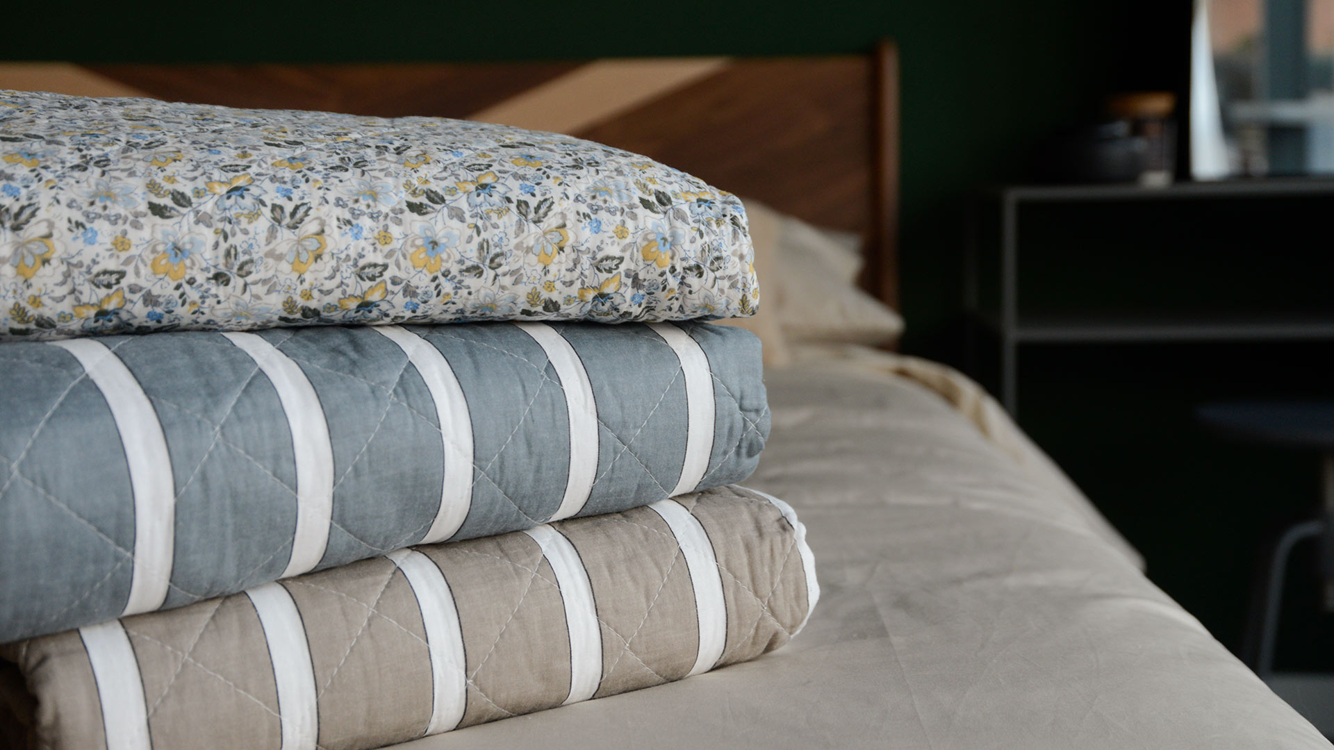 Stylish cotton quilts with a broad stripe pattern. The ideal weight for a light cover on their own, or for layering on the sofa or bed. Their smaller size also makes them perfect for draping over the arm of the sofa or end of the bed. These cotton quilts are either a treat for yourself, or make a lovely gift for a friend!