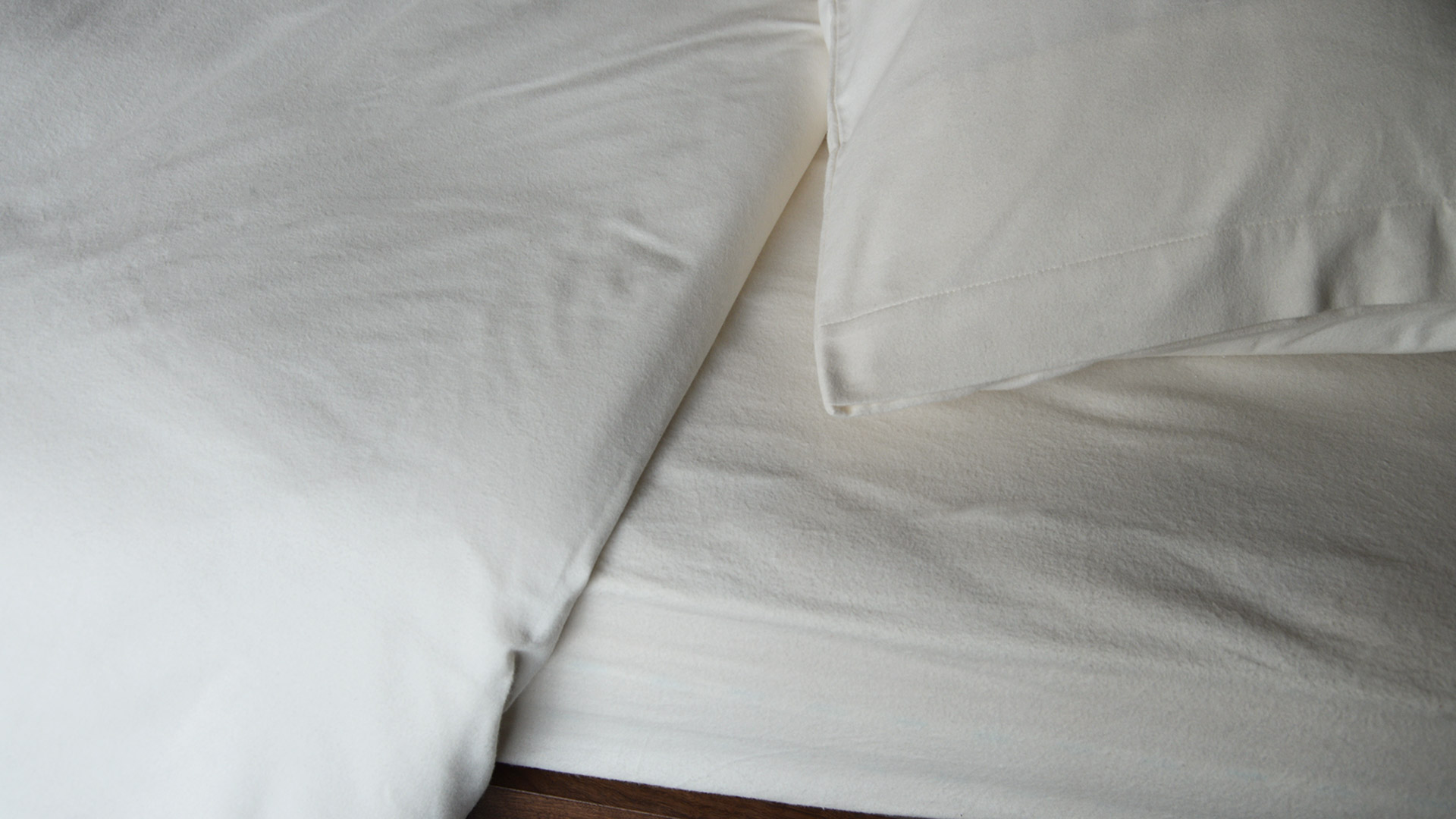 A collection of incredibly soft, brushed cotton sheets and pillowcases in a pale cream colour. Fitted sheets and flat sheets are available in double, king-size and super-king, sets of two pillowcases are also available.