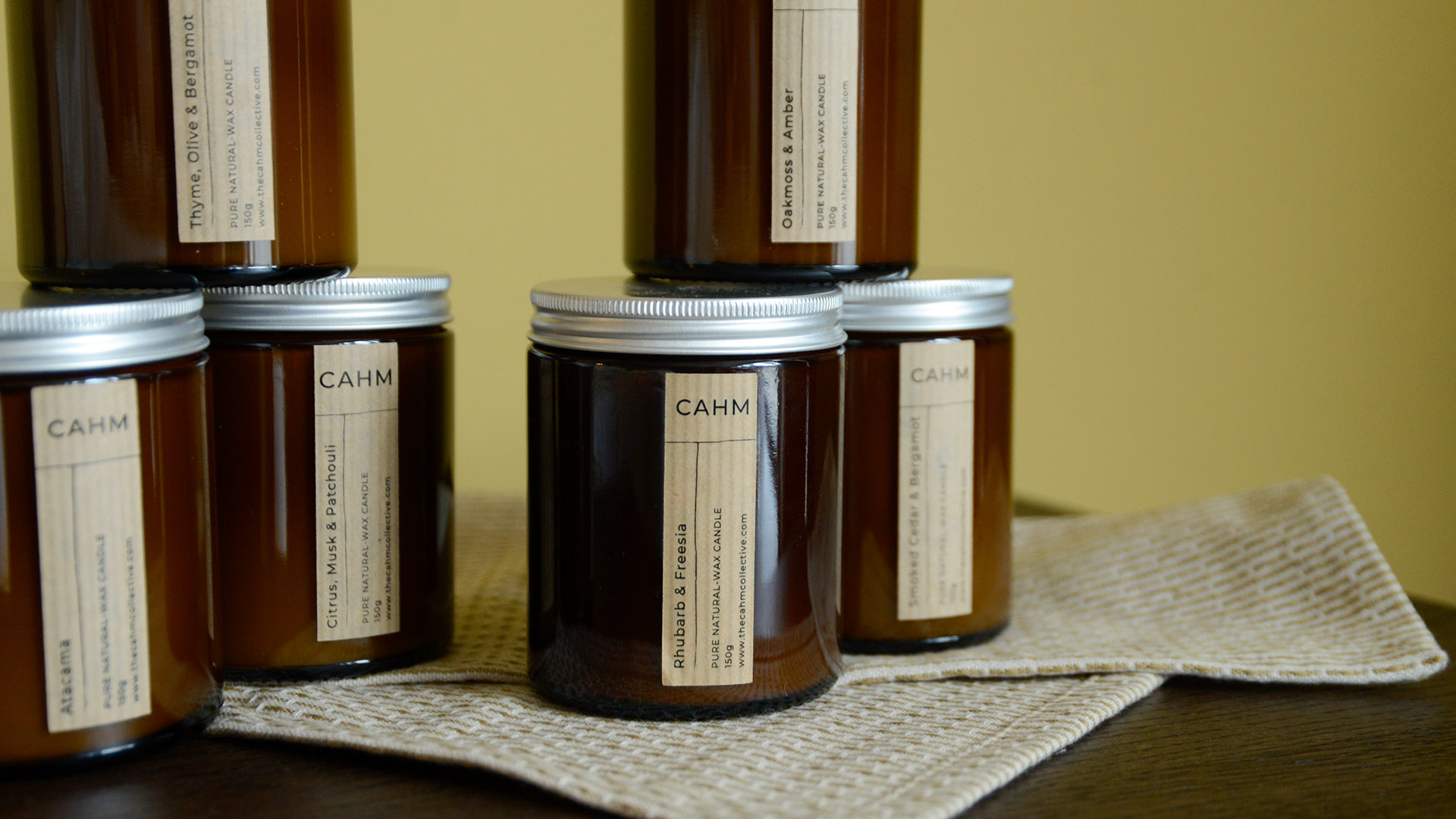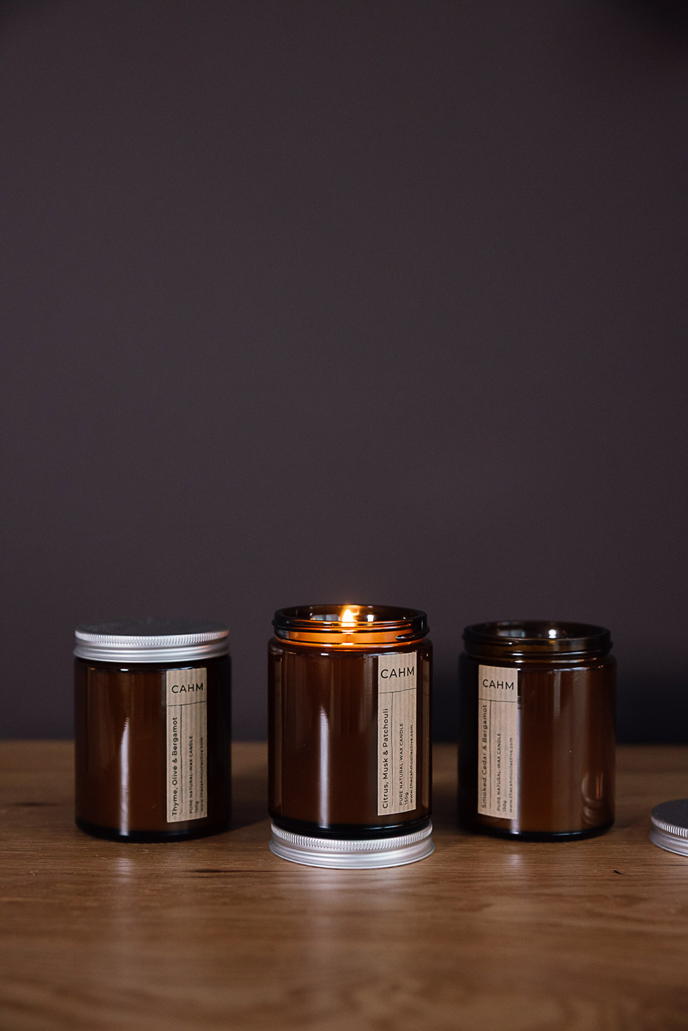 Modern and sophisticated Cahm luxury scented candles are in amber glass jars with aluminium screw tops. The perfect way to bring atmosphere and fragrance to any room, these candles make the perfect gift for a friend, or a treat for yourself.