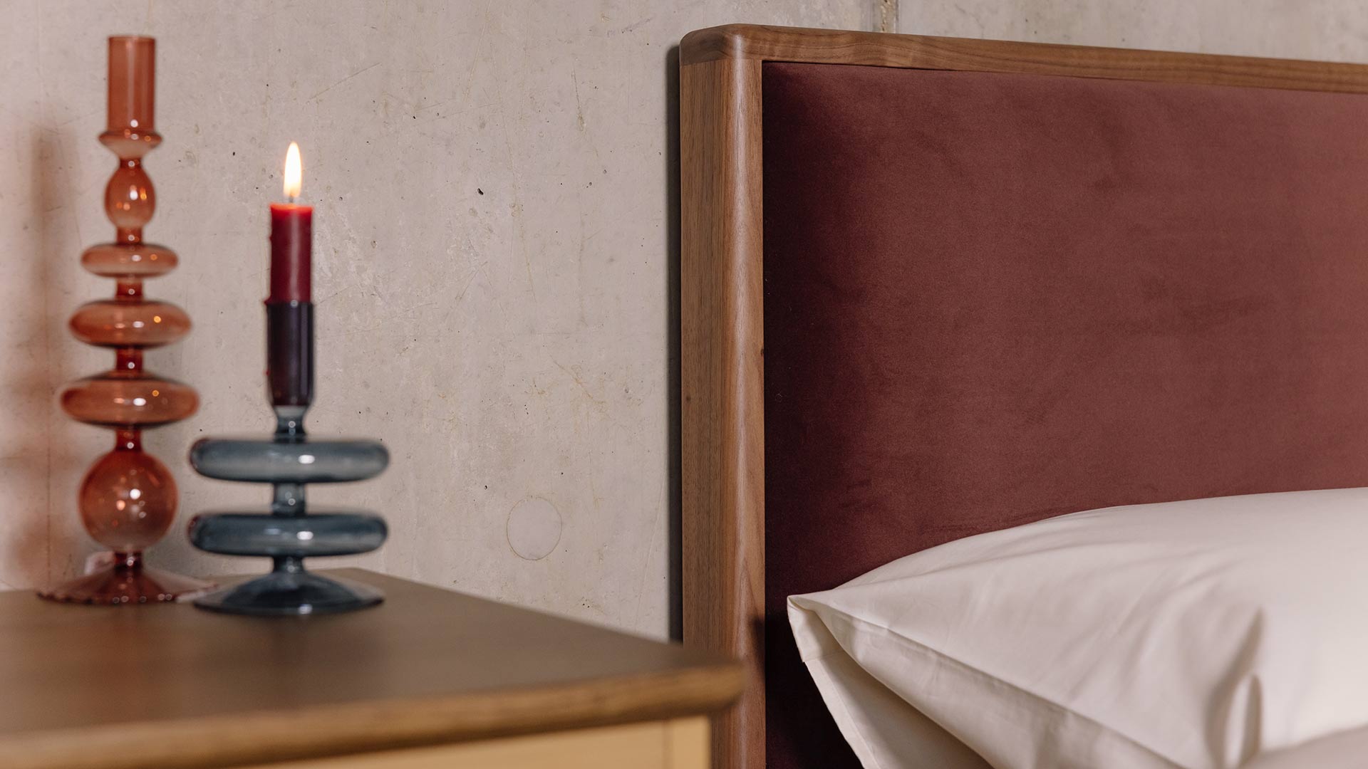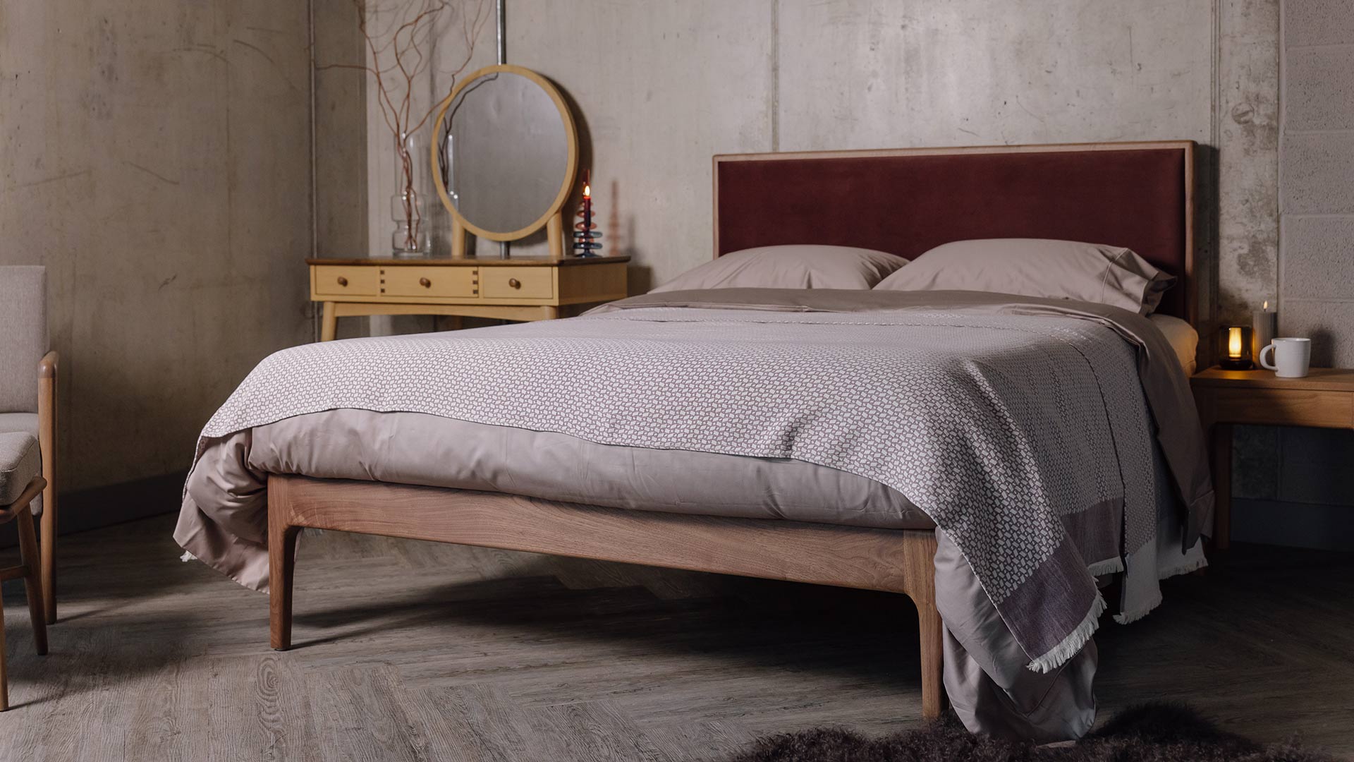 The Carlisle is a beautiful, contemporary bed with a mid-century style. A simple yet deep padded headboard for extra comfort. The curved frame is made of deep, slender sections of solid timber for a soft retro look.