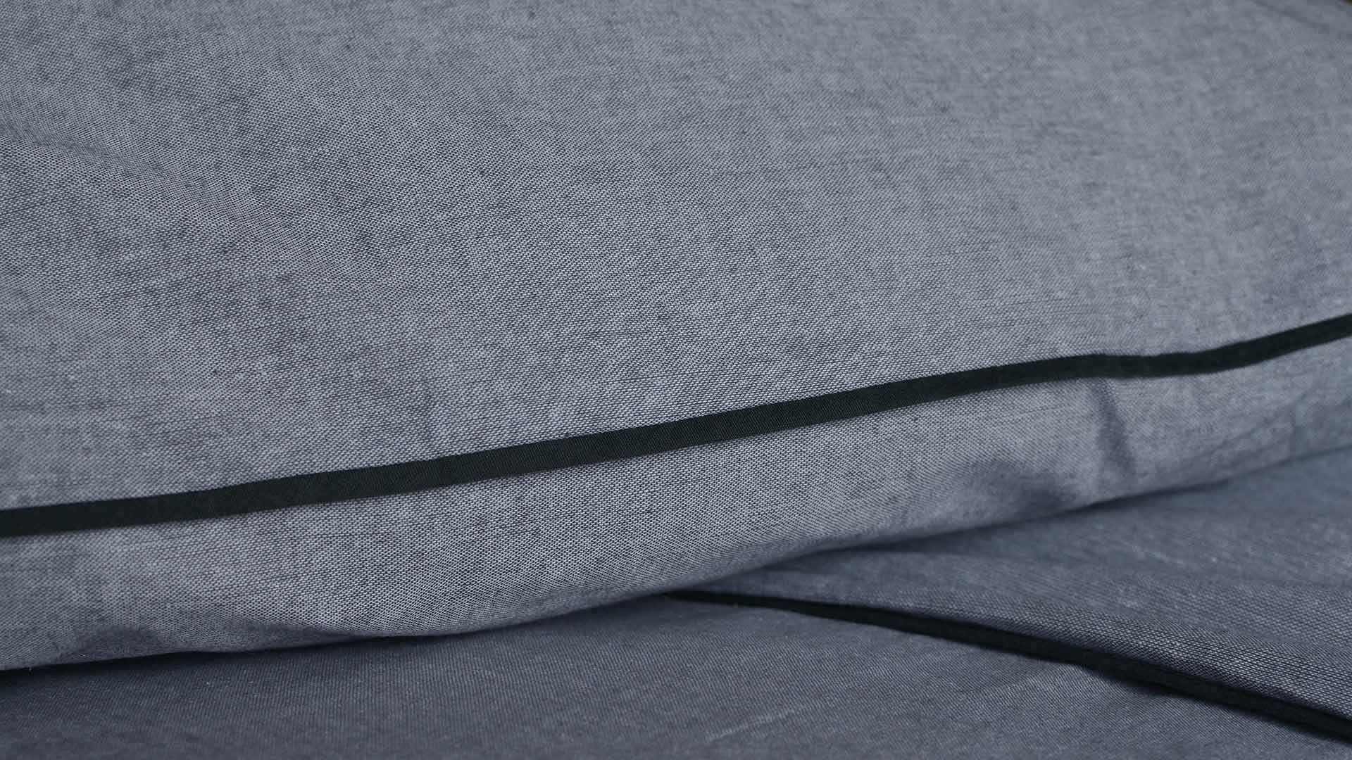 The chambray 100% cotton bedding also features a coordinating trim in a deeper shade. The traditional weaving techniques used blend white and coloured yarns to create a subtle two tone appearance, which also features flat piping edges in a tonal contrast colour.