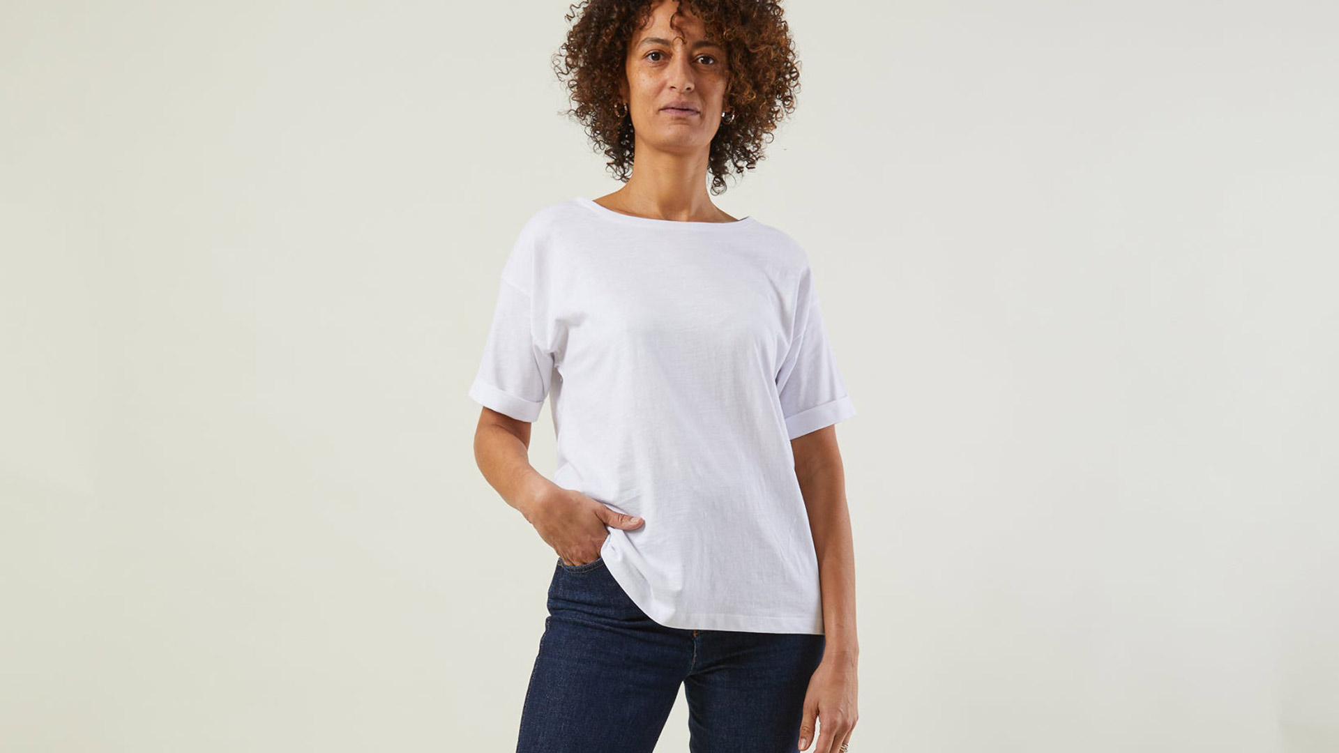 Crafted from 100% high-quality cotton slub, these classic cotton T-shirts boast a structured, boxey t-shirt design with stylish short turned up sleeves. The ultimate comfort in this versatile top. The perfect comfy, basic piece – dress up or down.