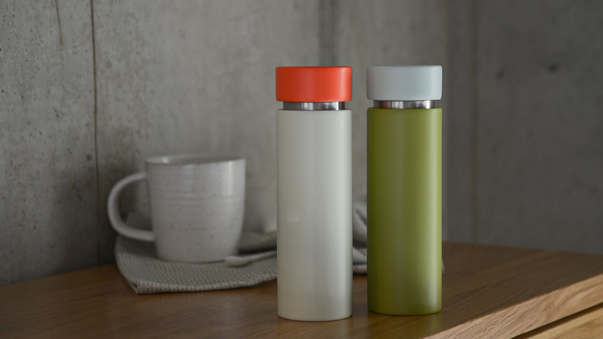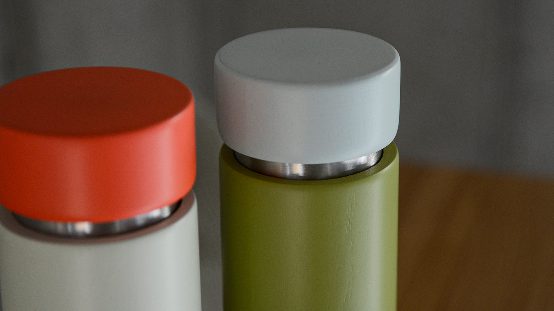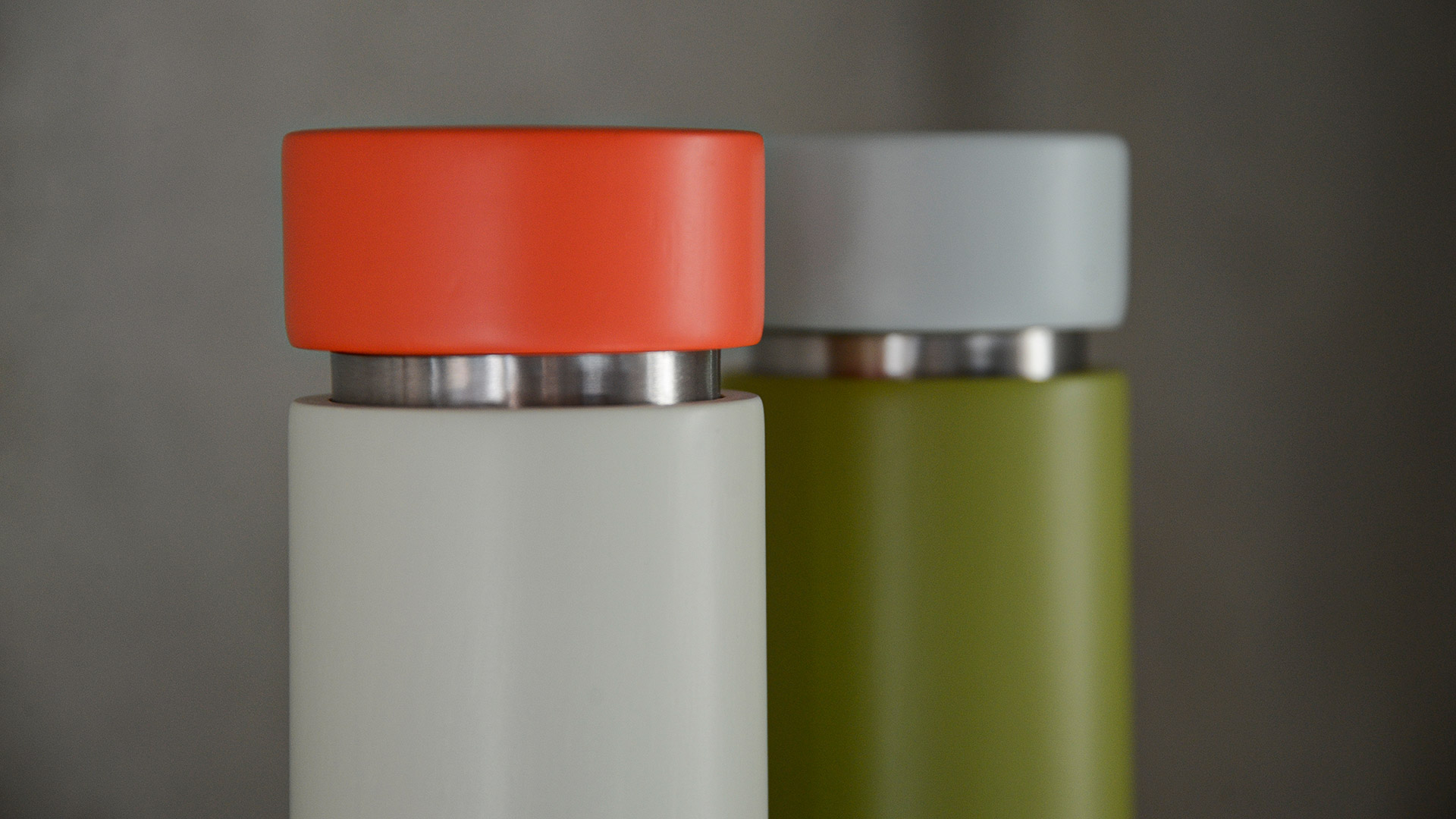 Add a touch of fun and colour to your dining table with these painted wood spice mills, also suitable for slat and pepper. Available in two colour variations: Light Grey & Orange or Olive & Blue.