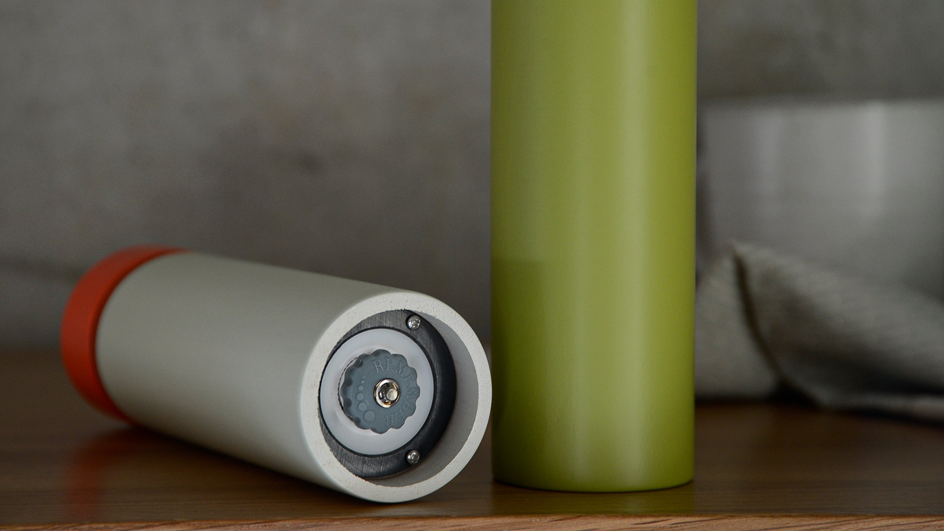 To fill the mill – firstly, the rotary head is pulled off and the spice grains are filled into the mill. Then the rotary head is put back on. They also feature an adjustable ceramic grinder – simply use the wheel on the underside to adjust the grinding degree. Turn clockwise for a finer grain and counterclockwise for a courser grain.