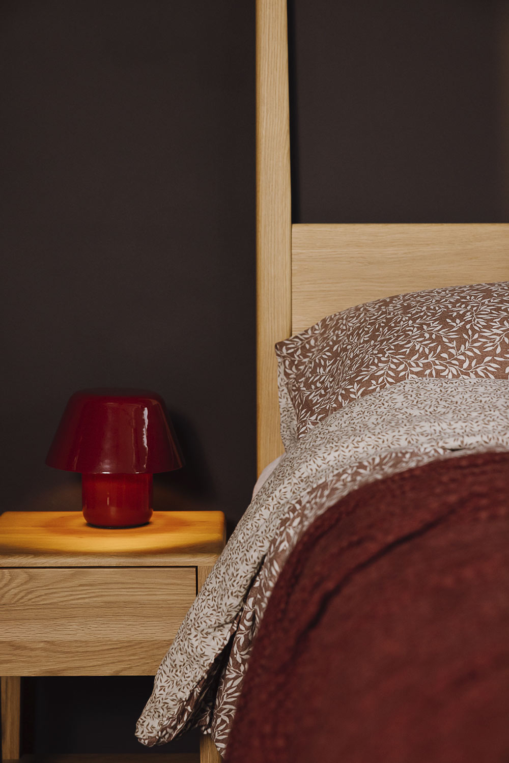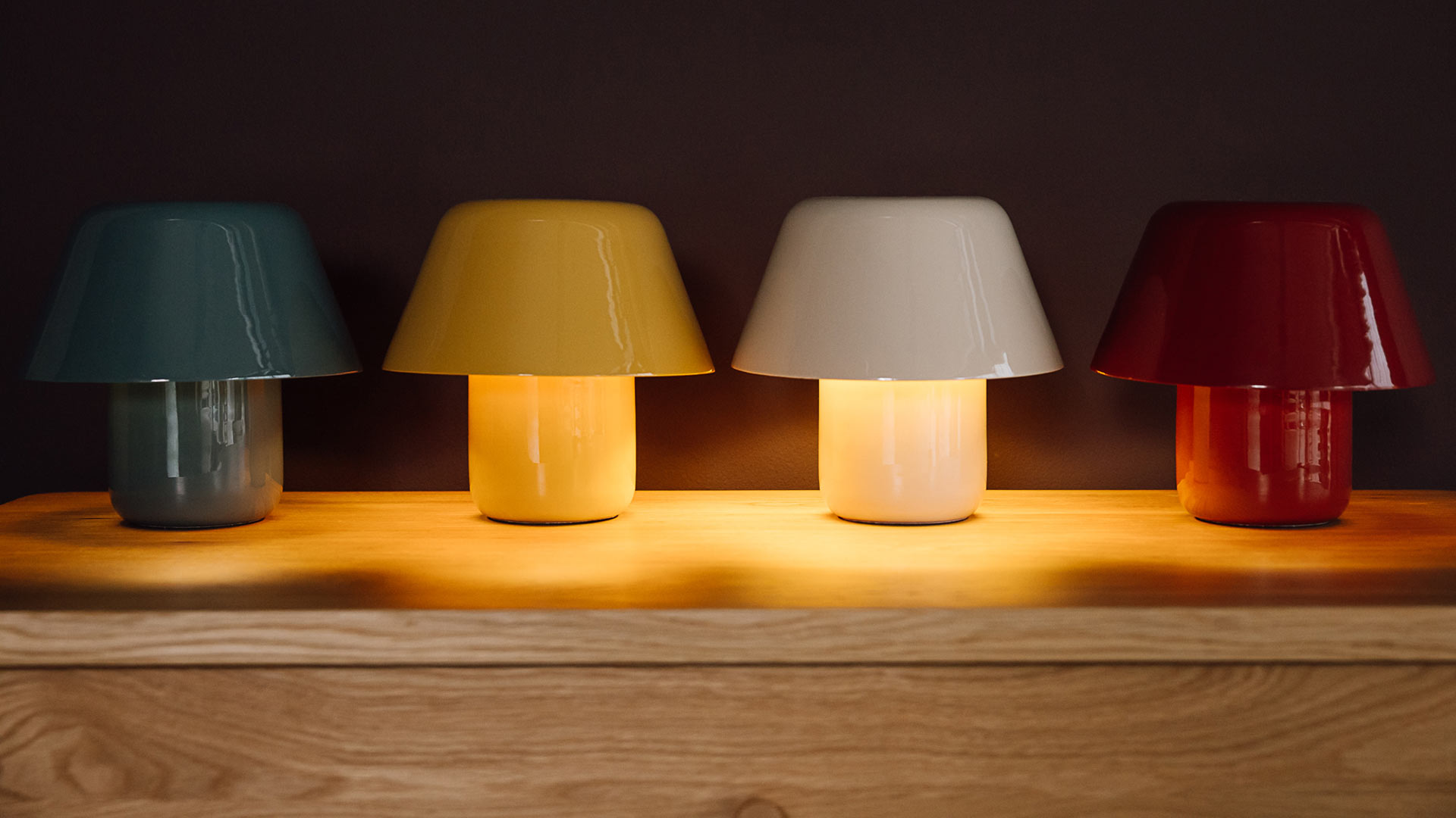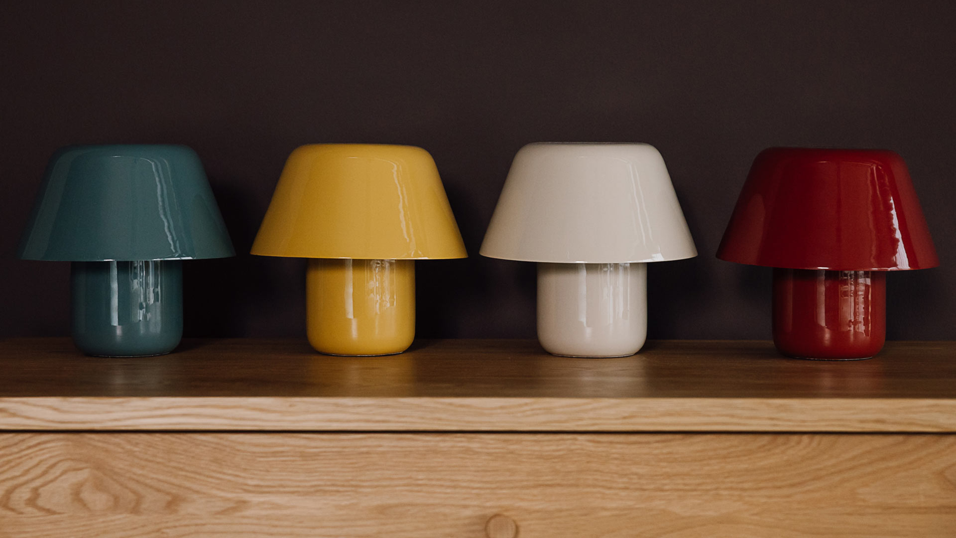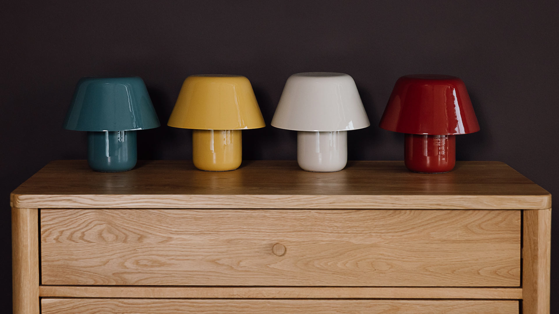 The perfect accent lamp for the bedside, bookshelf or sideboard. These colourful mid-century enamel table lamps effortlessly give off a cosy, retro vibe and they’re available in four colours. Choose from dusky blue, rich red, ochre yellow or pale stone to suit your room scheme. Each one gives off a soft glow; perfect mood lighting.