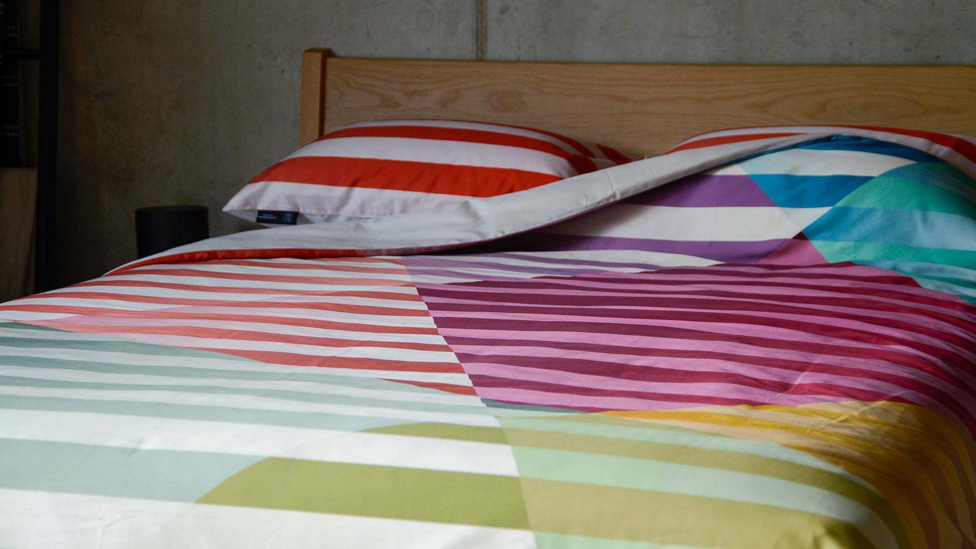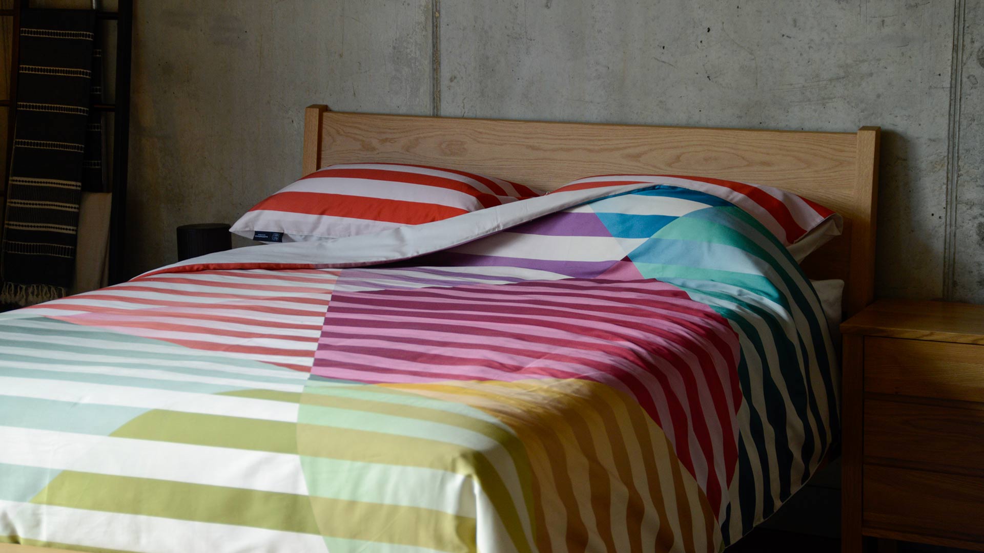Bold and bright, but with understated contemporary style, this colourful stripe bedding is made from certified organic cotton satin. Super smooth, with a lightweight satin finish.