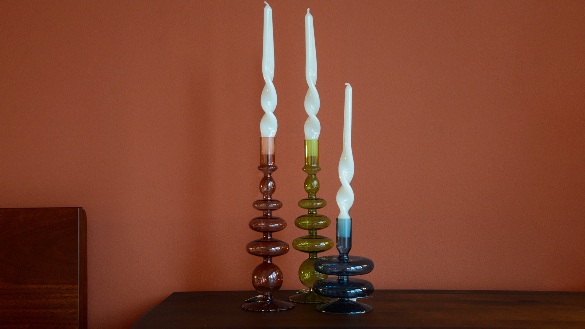 These colourful retro candles pair beautifully with a wide range of our candleholders. You can find all these and more just here.