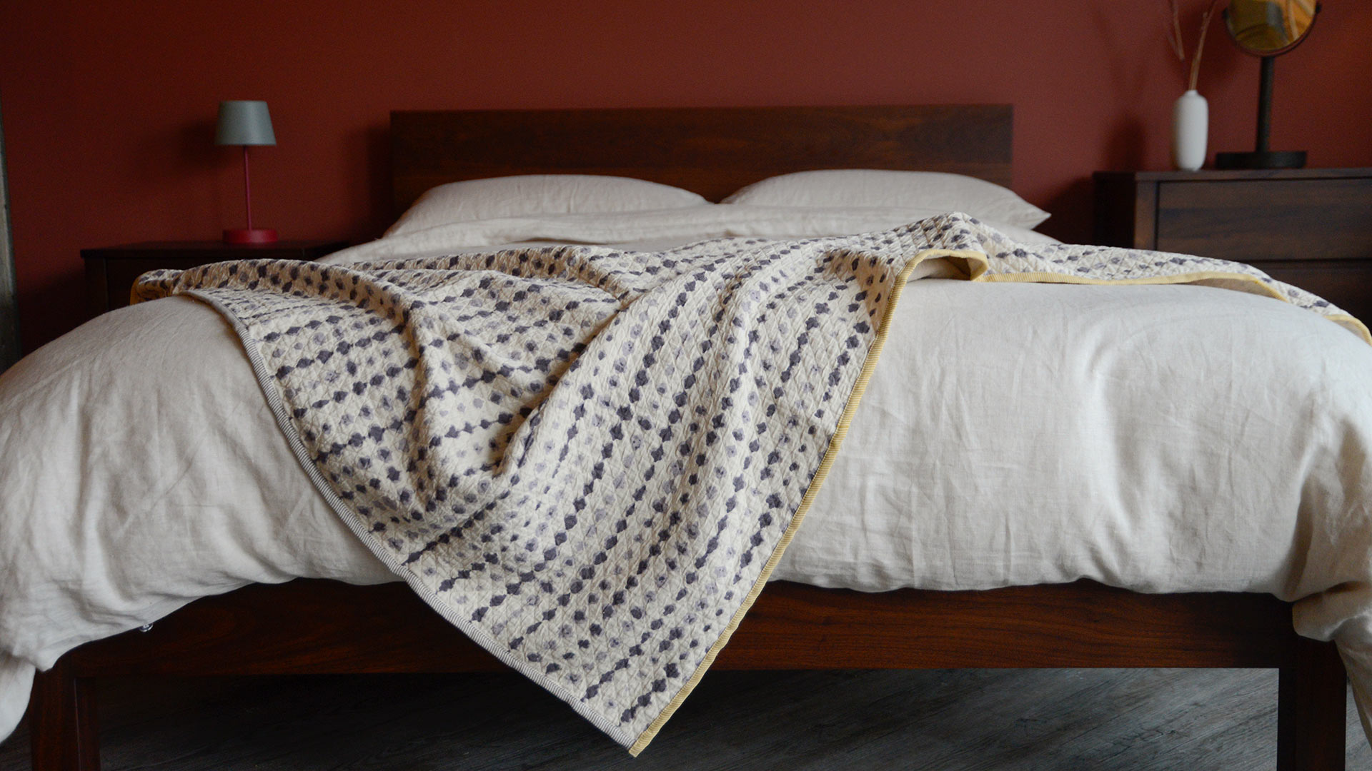 Their more compact size makes these throws ideal for use on the sofa or as an accent throw along the bottom of the bed. They’re also perfect as bedspreads on single beds. (Photographed here on a king-size bed). These contrast edged boho throws are simple, stylish and yet bring a sense of whimsy and calm thanks to their serene, colourful patterns.