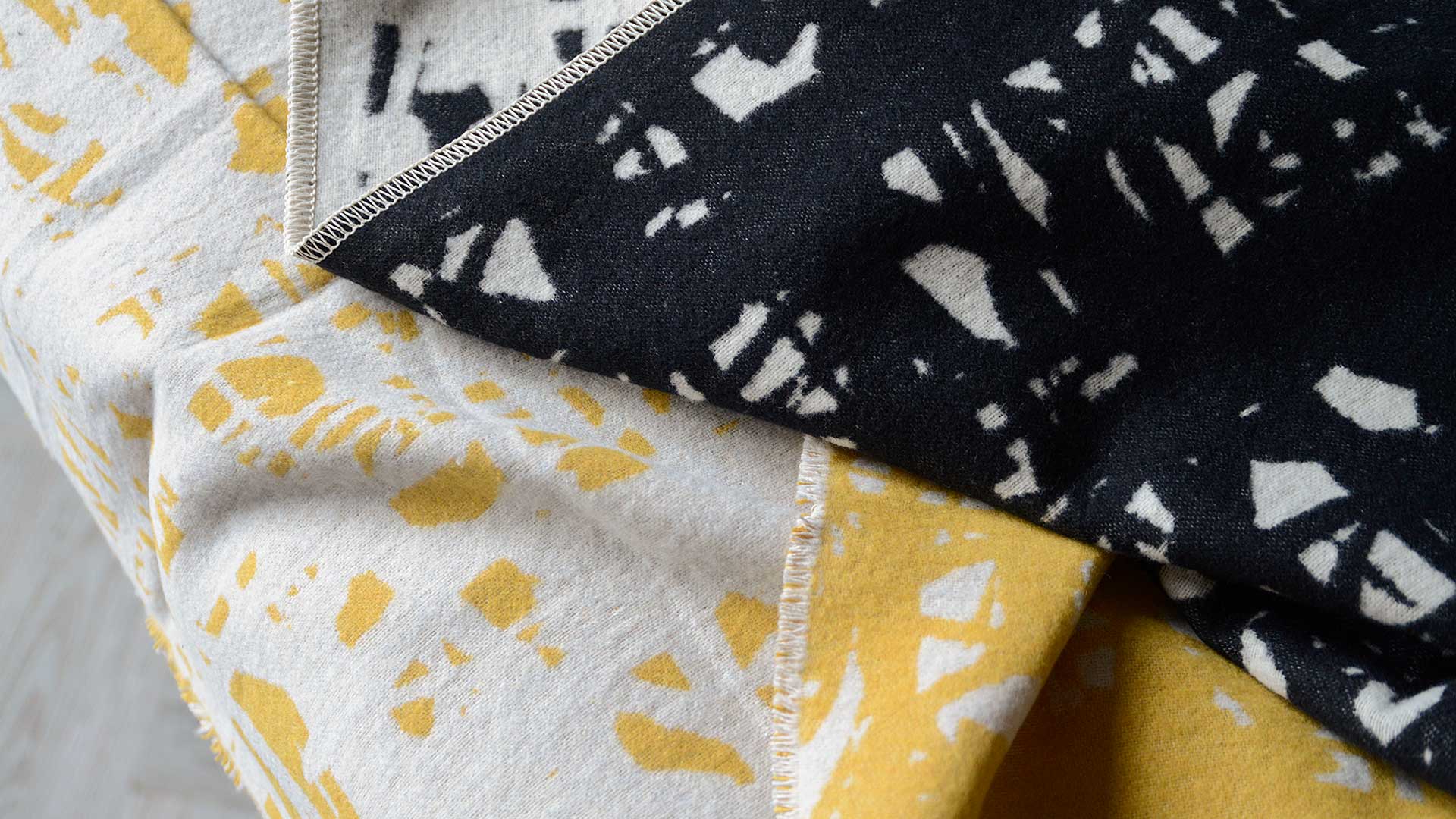 A collection of incredibly soft, reversible, cosy blankets with modern patterns. Made with a high percentage of recycled cotton – eco-friendly and stylish! They also come complete with a matching bag for easy storage when not in use. Cosy blankets with modern patterns, they’re ideal for making a statement in your room scheme thanks to their abstract design.