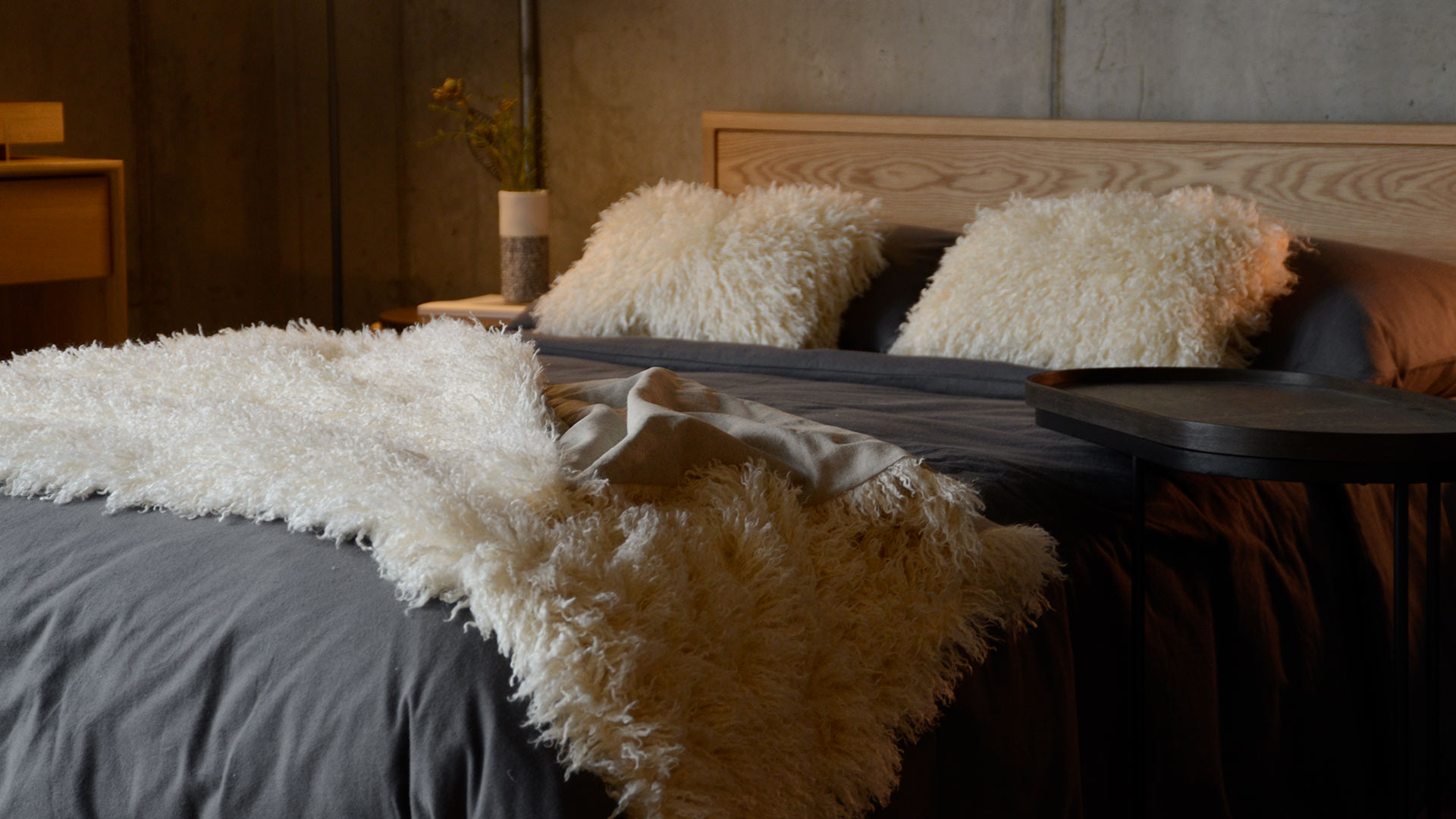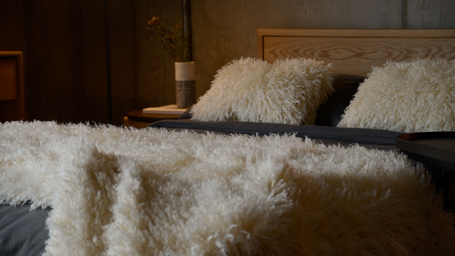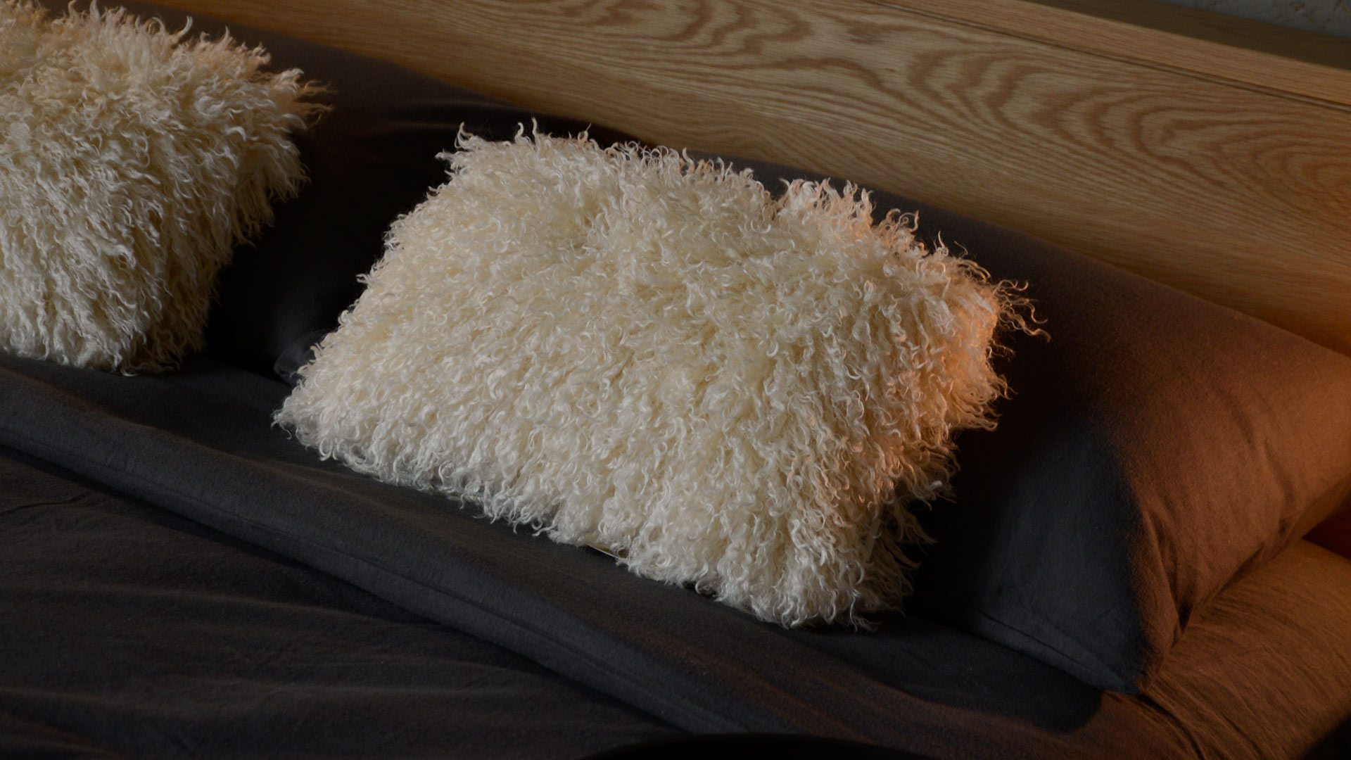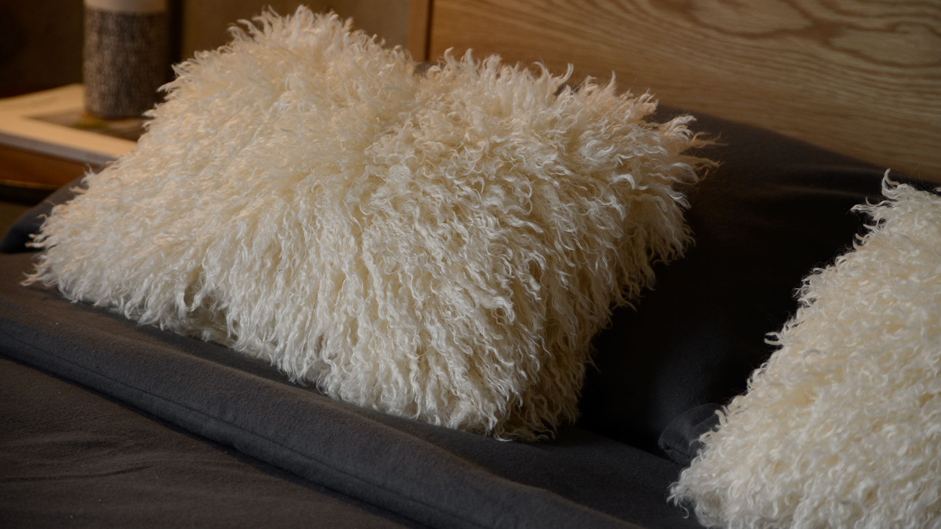 Cosy cushions with faux Afghan covers in a super soft, luxury fabric with a curly, very deep pile. Made in the UK.