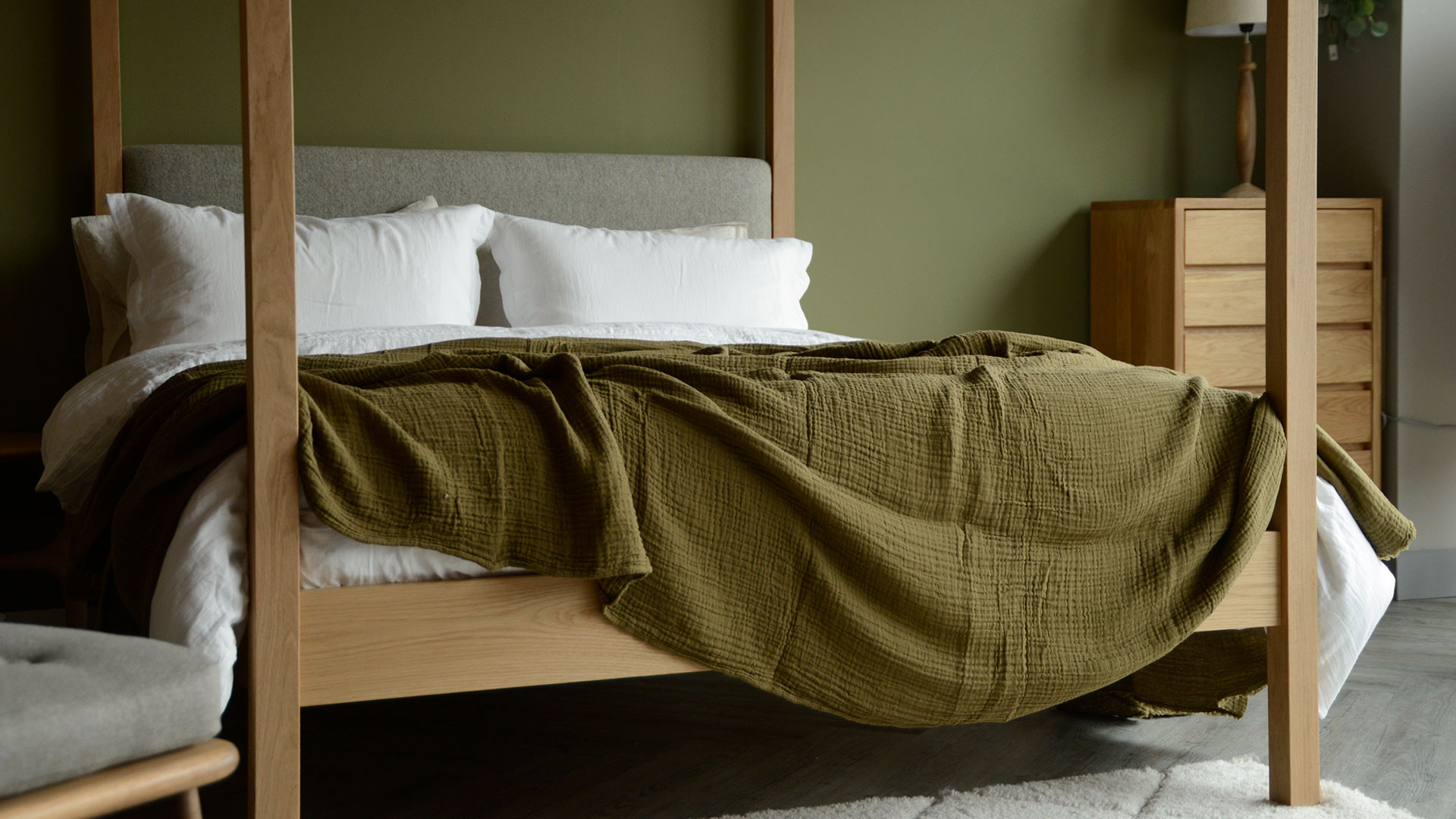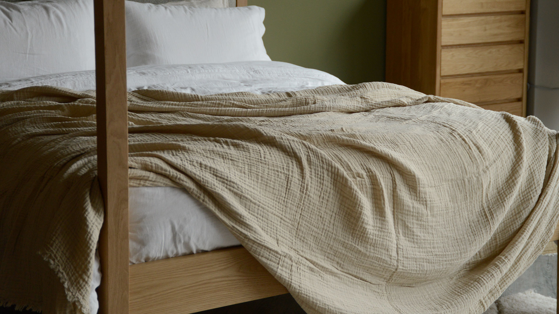 These throws are also crafted from four layers of soft cotton muslin, and available in a range of colours. Choose your favourite from the below before adding to the basket. You can also find smaller versions of a selection of these colours as throws, just here.