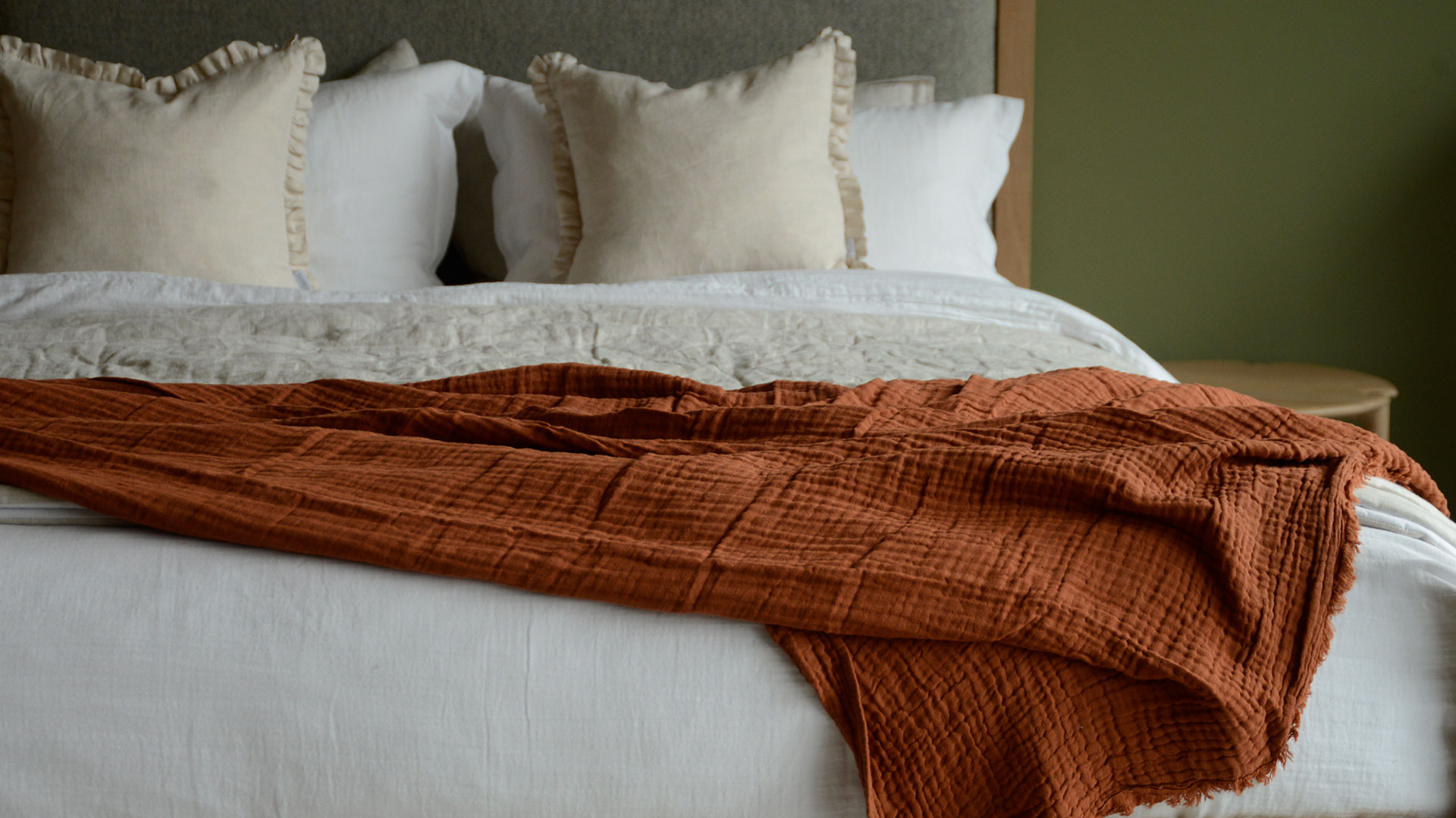 Beautifully soft and lightweight, these cotton muslin throws are perfect on their own as a light layer for relaxing on the sofa, or as an accent layered over your bedding. Available in a range of warm, contemporary colours. Further information can be found below.