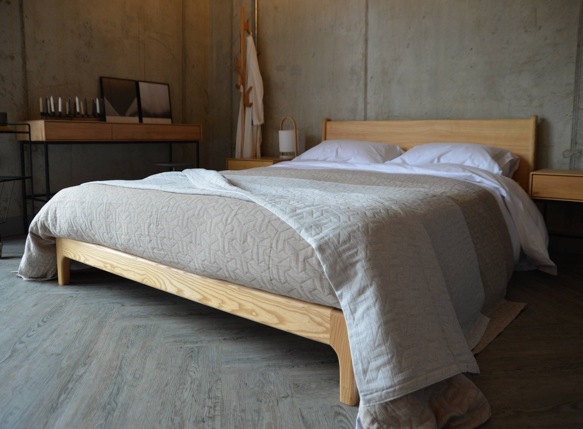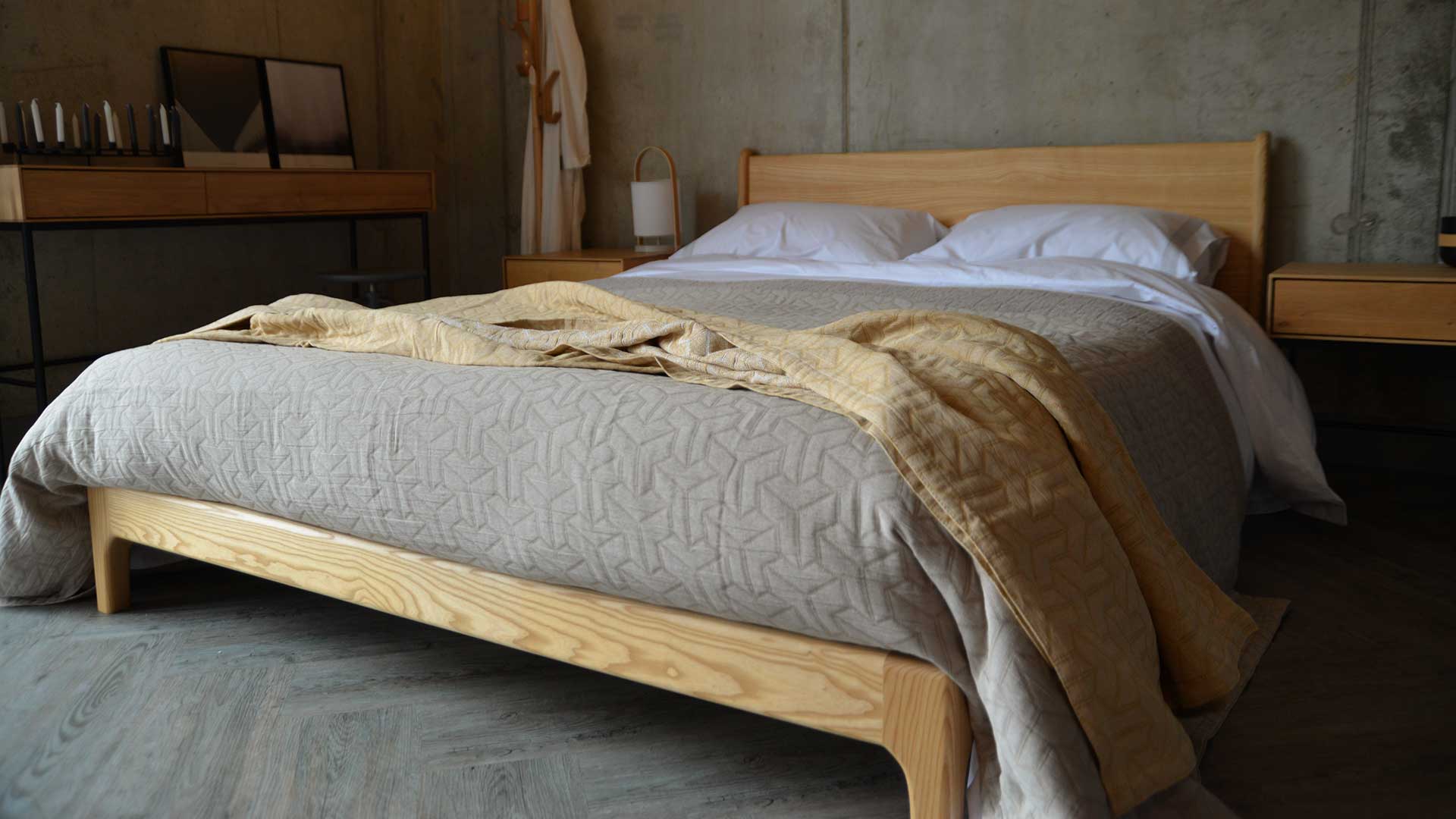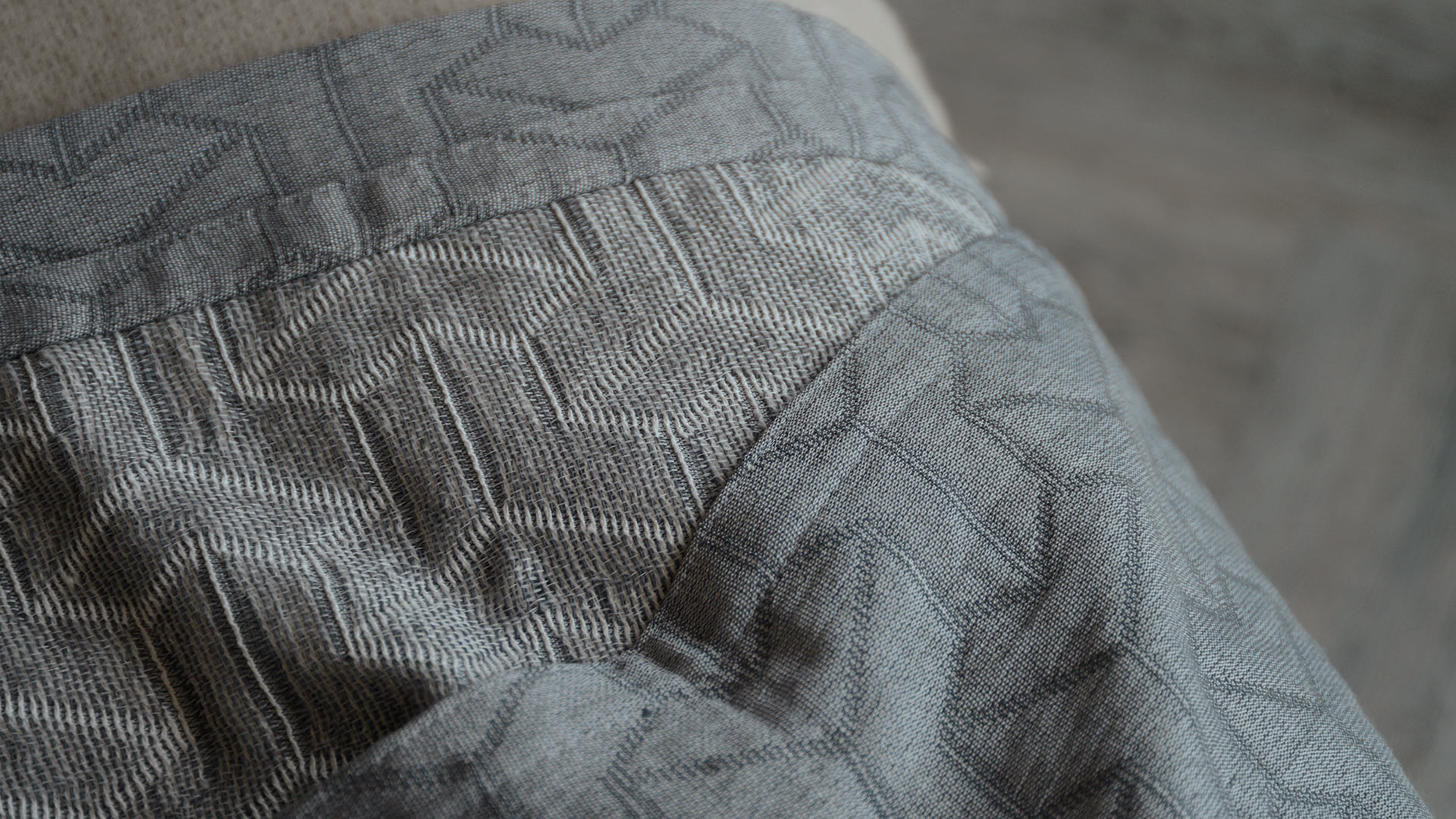 Contemporary, light-weight bedspreads with a textured, geometric pattern. These bed covers are available in three colours: antique gold, pale silver grey or taupe. These large, modern bedspreads are suitable for a double to super-king bed, depending on your bed height. Made with a blend of cotton, recycled cotton and polyester.